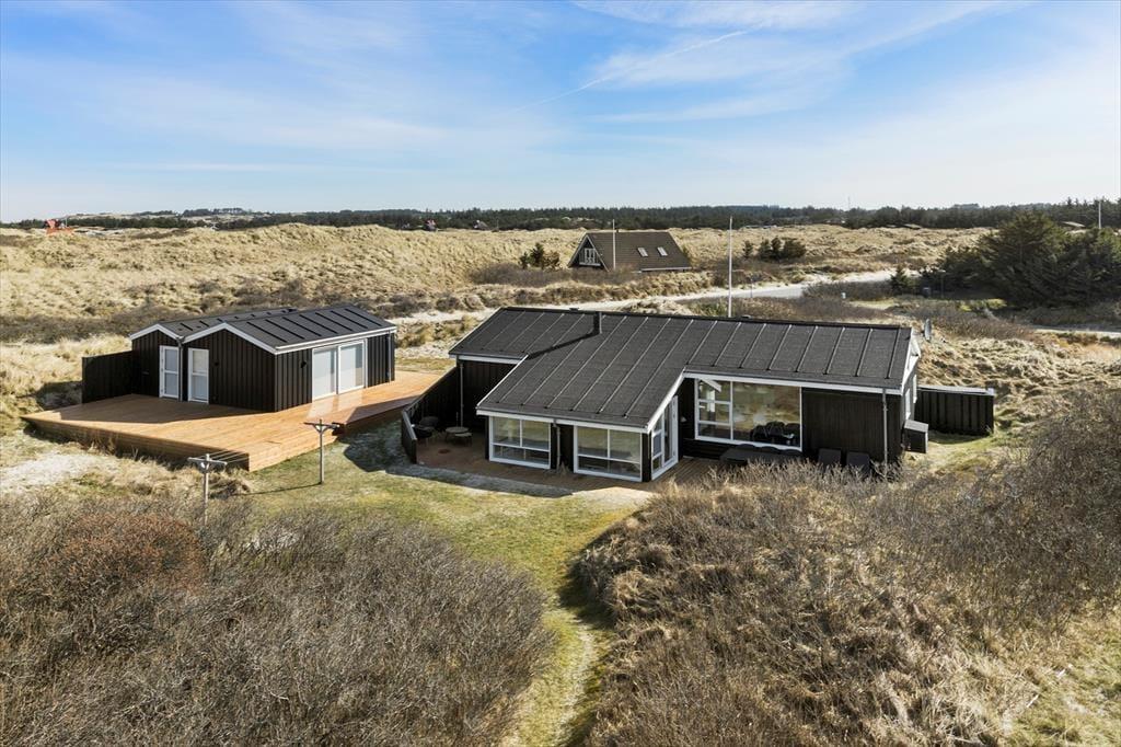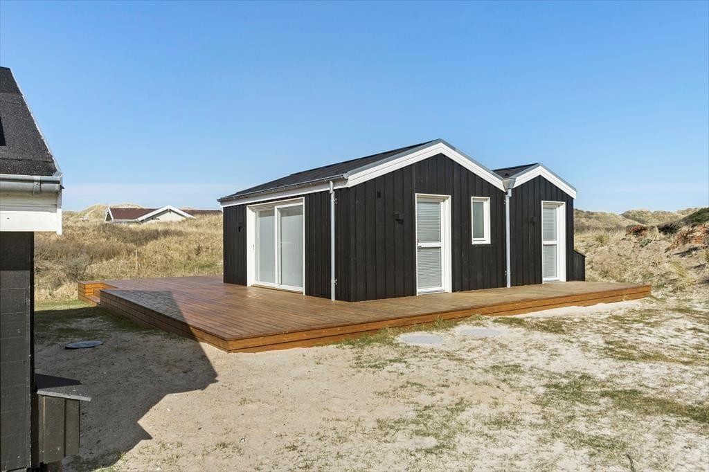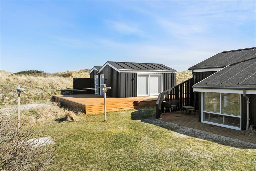 Når du træder ud på terrassen, åbner der sig en verden af udendørs hygge og afslapning. Terrassen er perfekt til solrige dage, hvor du kan læne dig tilbage i havestolen og nyde solen og den friske luft. Som en ekstra bonus er sommerhuset omgivet af den smukke natur, og den første klitrække er kun et stenkast væk. Her kan du nyde lange gåture i klitterne eller tage en dukkert i Vesterhavet. Hvis du har lyst til at grille, er der også en udendørs grill, så du kan tilberede måltider under åben himmel. Fra terrassen kan du både nyde udsigten over naturen og det rolige område omkring sommerhuset.