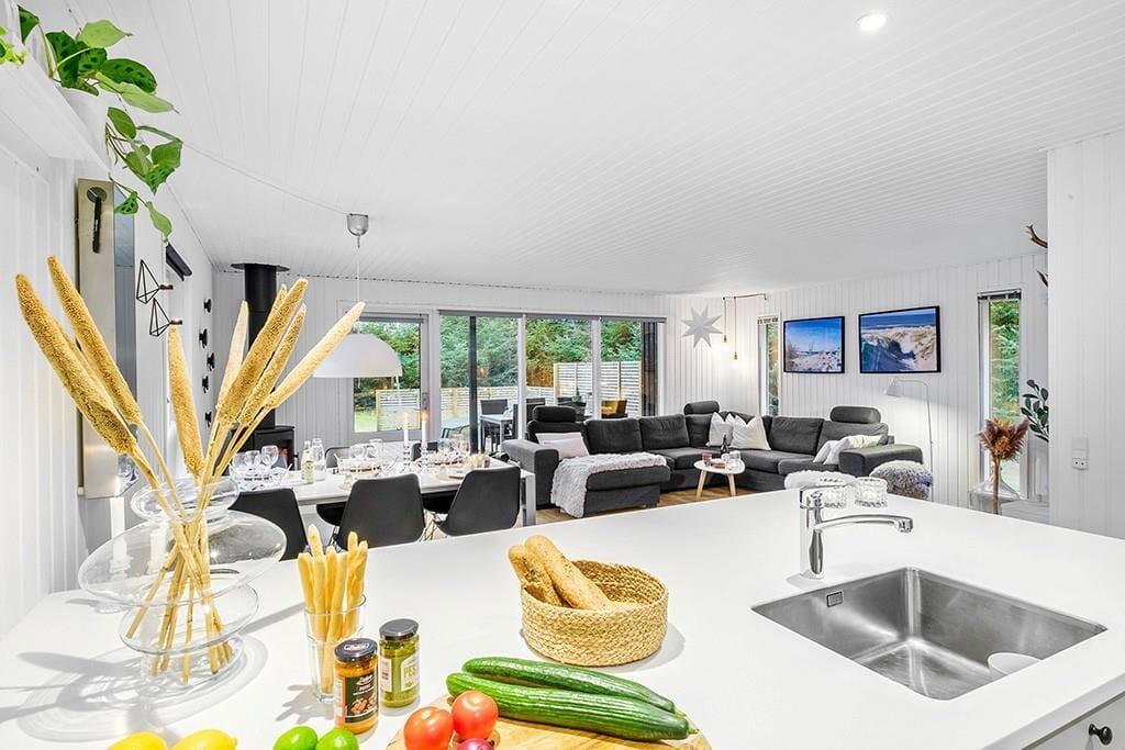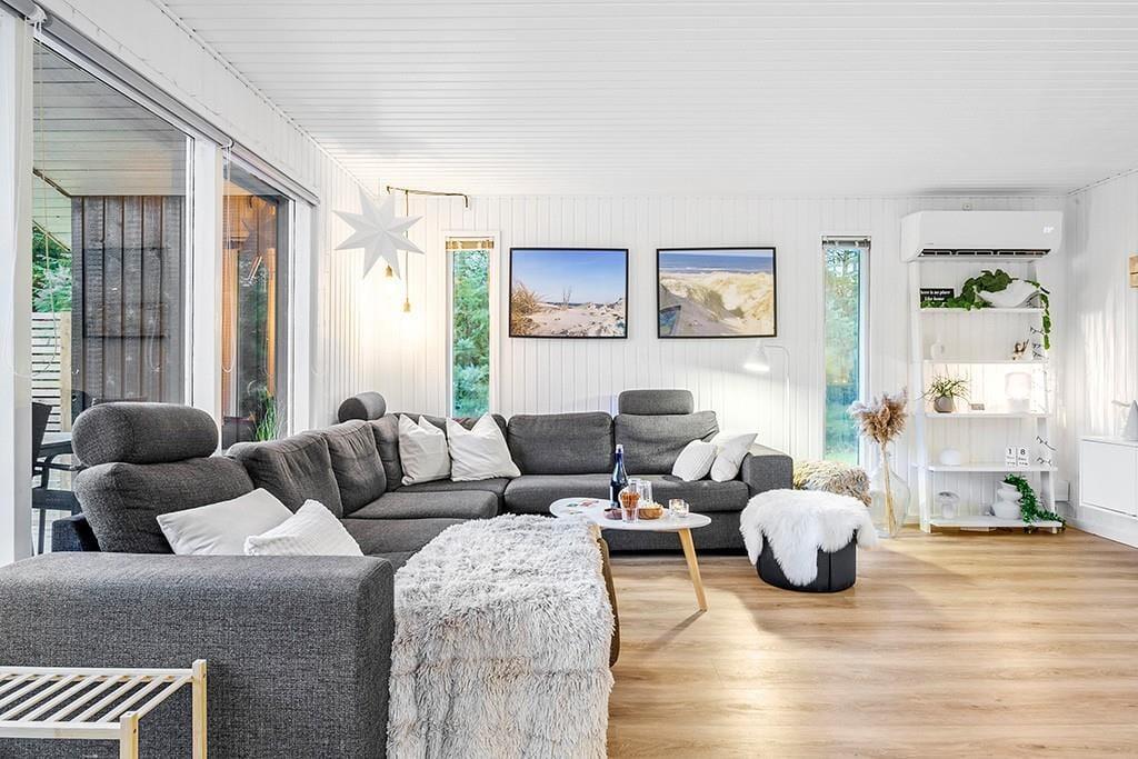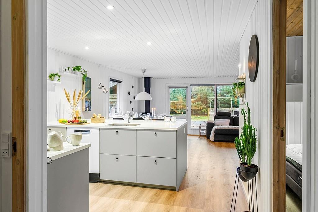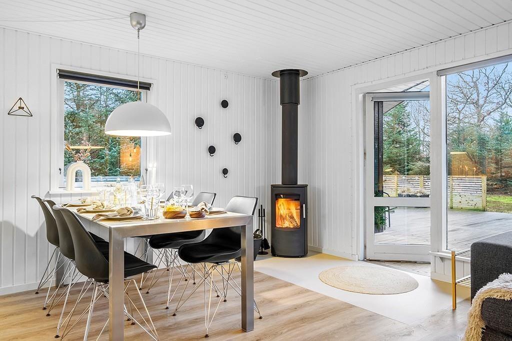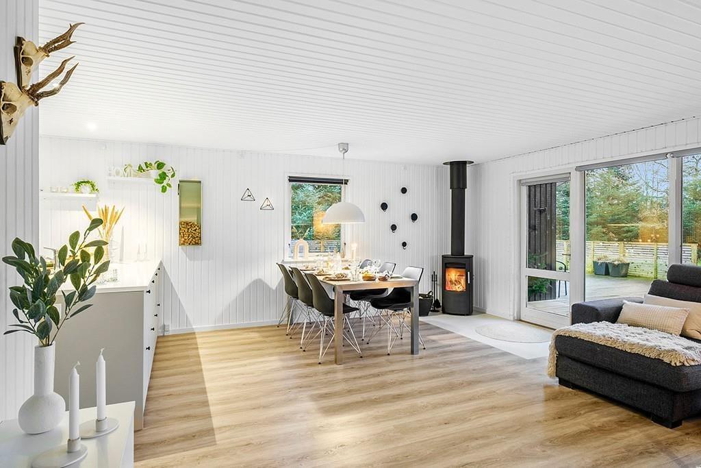 Sommerhus i Saltum, Nordjylland, med plads til 6 voksne og 1 husdyr. Der er en hyggelig indretning med bl.a. brændeovn, og du finder desuden vaskemaskine, opvaskemaskine og tørretumbler i boligen.