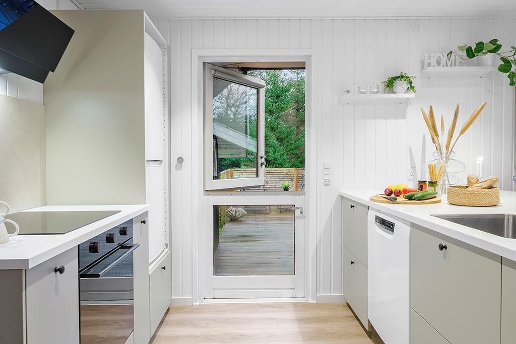 Boligen er på 85 m² og ligger på en 1.300 m² stor grund, hvor der bl.a. er gynge og sandkasse.