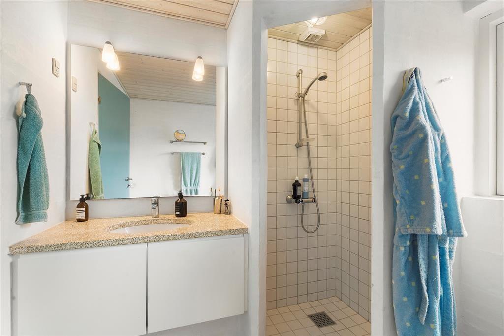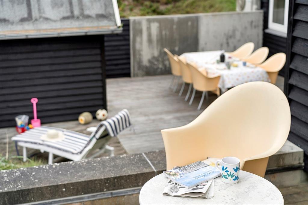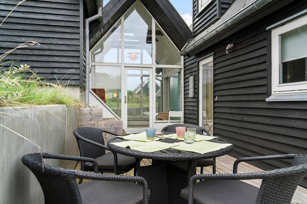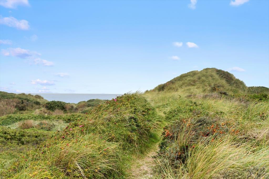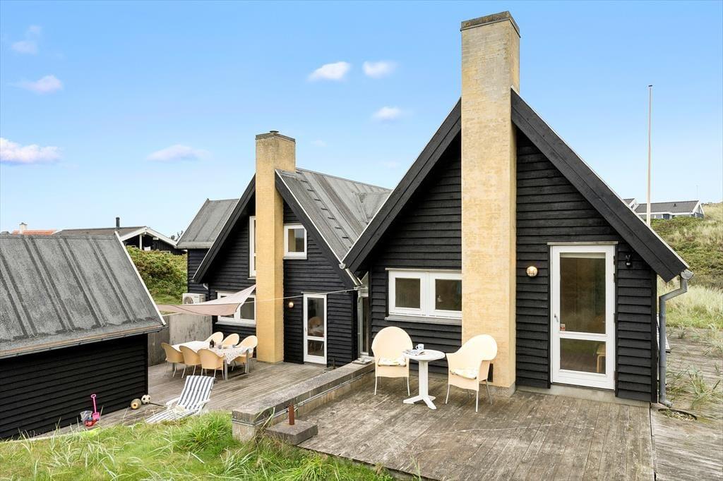 Sommerhuset har flere terrasser, som giver dig mulighed for at finde både sol og skygge i løbet af dagen. Måske starter du dagen på den østvendte terrasse med en dampende kop kaffe, mens solen langsomt stiger op over klitterne. Senere kan du søge mod den syd- eller vestvendte terrasse, hvor du kan nyde eftermiddagens sol, en kølig drink eller en hyggelig grillaften med familien. Haven er omkranset af træer og buske, som skaber en fredfyldt atmosfære – her kan børnene lege trygt, mens de voksne slapper af i havemøblerne og mærker roen sænke sig.