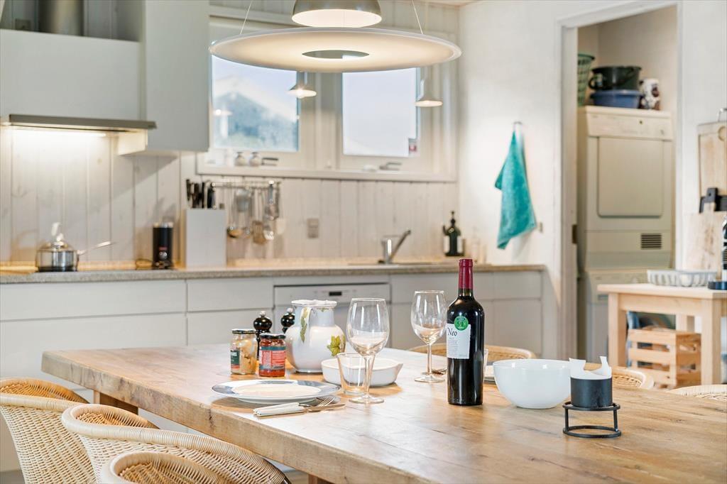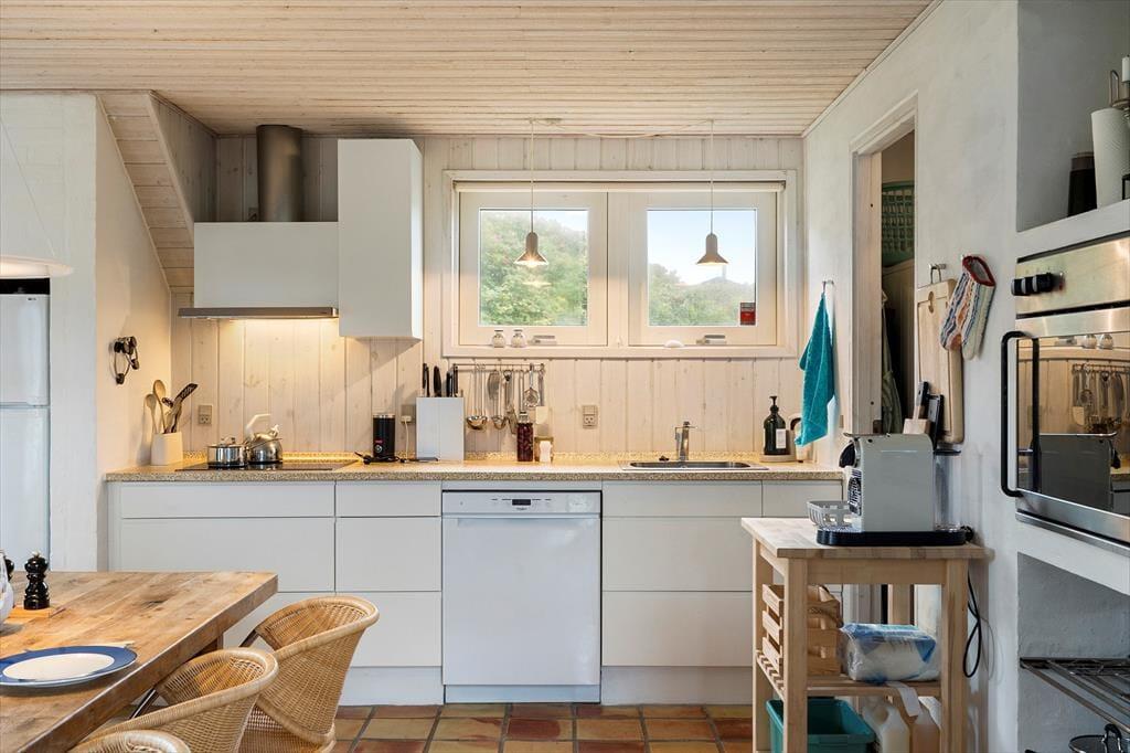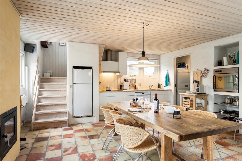 Sommerhuset har en indretning, der emmer af hygge og feriestemning. Her kan du slappe af i den lyse stue, hvor brændeovnen knitrer på kølige dage, og store vinduer inviterer naturen indenfor. Det åbne køkken gør det let at samles om madlavningen, og efter middagen kan I sætte jer godt til rette i sofaen med en film, et spil kort eller blot en stille stund med en god bog. De rolige soveværelser indbyder til afslappende nætter, så du vågner udhvilet og klar til en ny feriedag i Saltum.