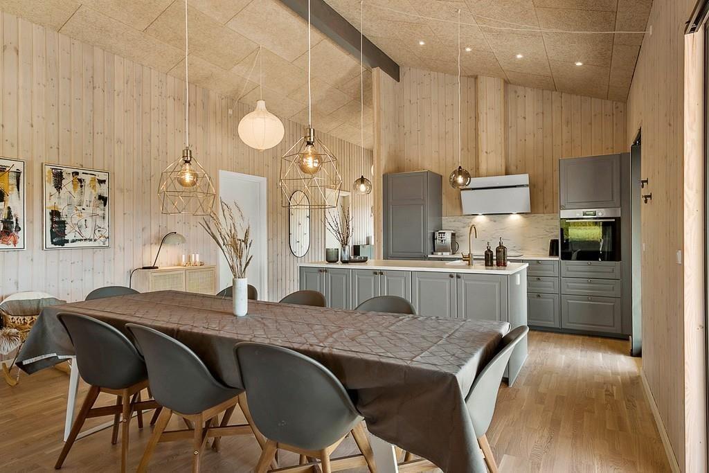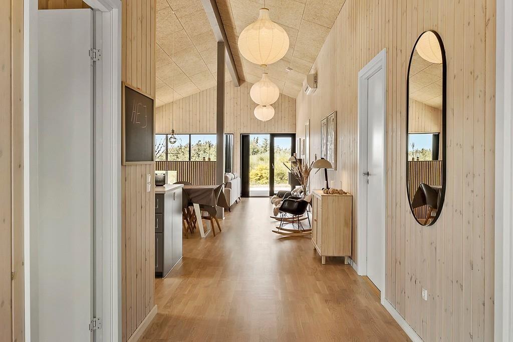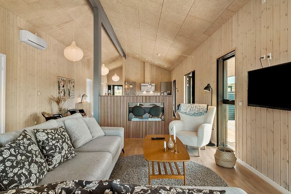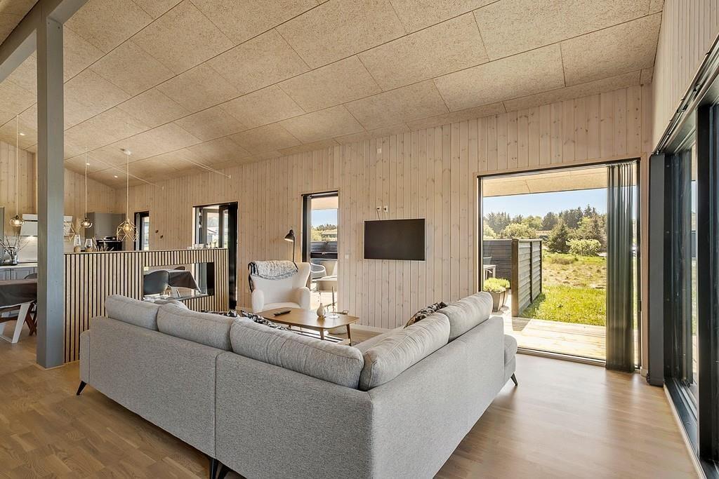 Som du træder ind i dette lyse og indbydende sommerhus, vil du straks mærke den varme og rolige atmosfære, der breder sig. De store vinduer og det åbne køkken-alrum giver masser af lys og skaber en dejlig, indbydende stemning, som du kan mærke med det samme. Huset er indrettet med smagfulde møbler og detaljer, der giver en følelse af luksus, men stadig med en afslappet feriefornemmelse. Om vinteren er det rart at sætte sig i opholdsområdet og nyde varmen og den hyggelige stemning, mens du slapper af. Når solen skinner, kan du nyde de rolige omgivelser gennem de store vinduer og lytte til fuglesangen i haven. Huset har gode sovepladser og er perfekt til en afslappet ferie med både familie og venner.