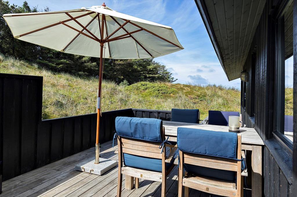 Sommerhusets udendørs arealer er noget helt særligt. Med tre terrasser kan du altid finde en plads i solen eller skyggen alt efter behov. Den ene terrasse har en fantastisk havudsigt, der indbyder til lange, afslappende stunder med en god bog eller et glas vin. Den lukkede terrasse mod syd er perfekt til hyggelige grillmiddage og afslapning med familien, mens den tredje terrasse mod vest er ideel til at nyde de smukke solnedgange over havet. Den skønne udsigtsbænk på grunden er et oplagt sted at nyde en stille stund og lade tankerne flyve, mens du nyder den fantastiske udsigt over havet og den smukke natur omkring dig.