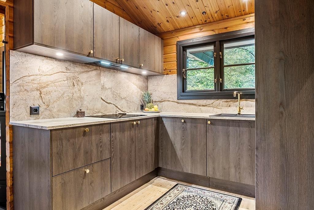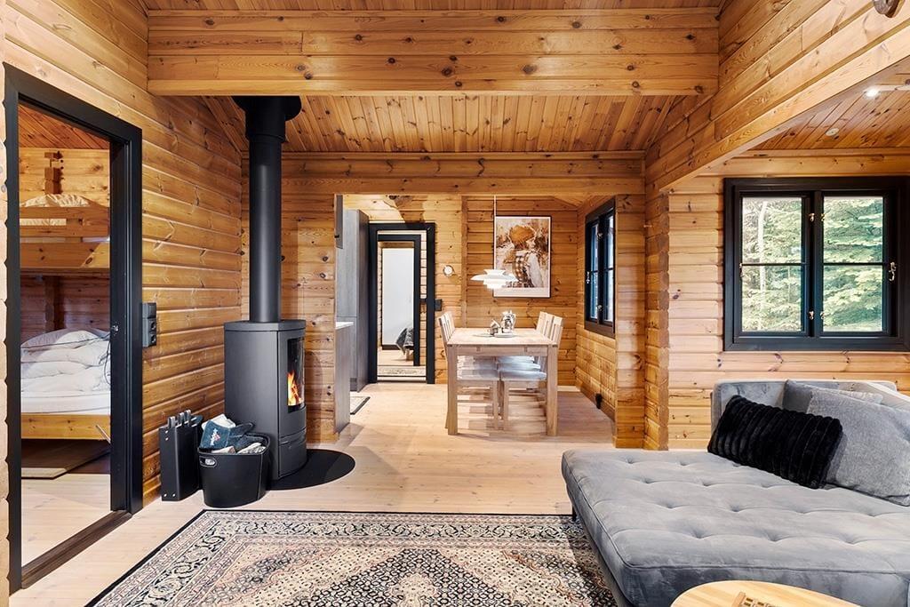 Sommerhuset byder på en lys og behagelig indretning med en afslappet atmosfære. I stuen kan I samles og hygge jer med brætspil eller en god film om aftenen, og i det åbne køkken kan familiens kok udfolde sig, mens børnene leger ved spisebordet eller hjælper til med maden. Fra stuen er der direkte adgang til terrassen, så udelivet bliver en naturlig forlængelse af hverdagen i sommerhuset. Huset rummer et soveværelse til forældrene samt en hyggelig alkove, som børnene vil elske at putte sig i.
