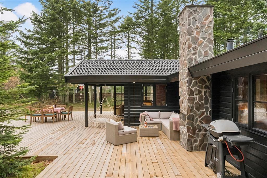 Terrassen er sommerhusets hjerte om sommeren – her kan I nyde dagens første kop kaffe under åben himmel og tilbringe afslappende timer i solen. Terrassen er både stor og delvist overdækket, så I altid kan finde skygge eller ly, uanset hvordan vejret arter sig. Om aftenen kan I tænde op i grillen og sætte jer til rette, mens I nyder maden og hinandens selskab. Den store terrasse indbyder til lange dage under åben himmel, og børnene kan lege frit omkring på det lukkede terrasseområde.