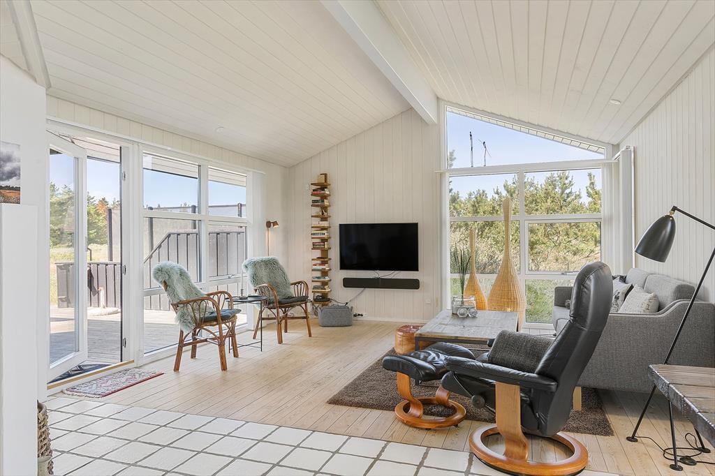 I dette flotte sommerhus får I en god kombination af kvalitet, moderne faciliteter og skøn beliggenhed. Gennem de store vinduer kommer masser af lys ind i rummene, og indretningen med skønne møbler og hyggelige detaljer giver huset et godt indtryk fra start til slut af jeres ophold.