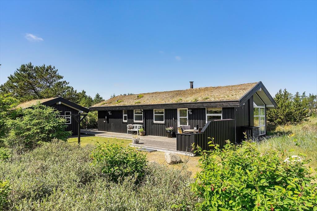 Sommerhuset ligger på en skøn naturgrund, hvor der er udsigt til den altid vekslende lyng som giver en skøn naturoplevelse, hvor det også tit er muligt at opleve rådyr og fasaner vandre roligt forbi. Den store træterrasse vender skønt ud mod syd og er helt ugeneret, her kan I grille, spise, slikke sol og bare nyde sommeren.