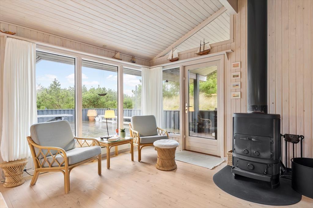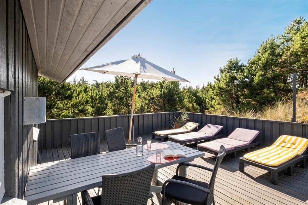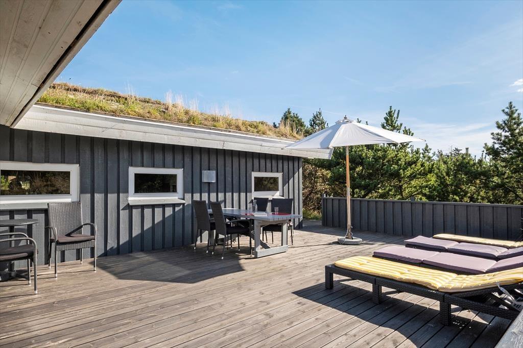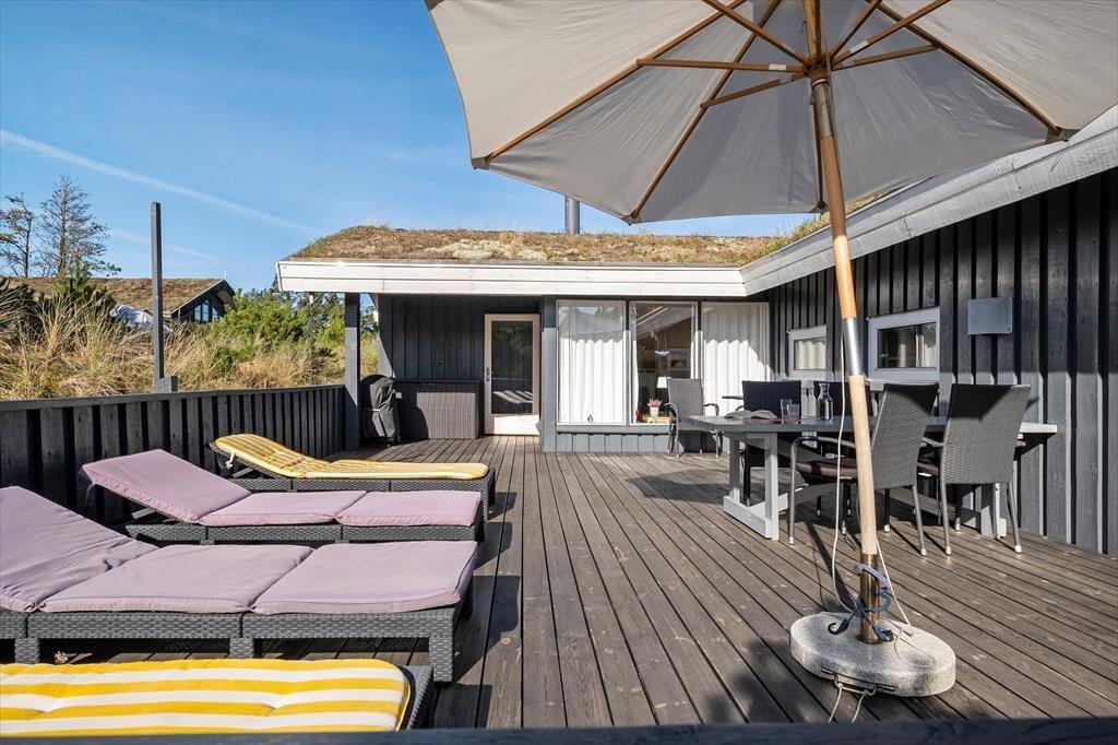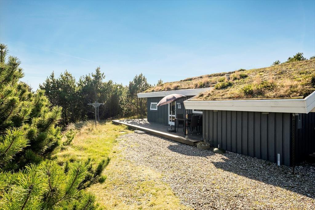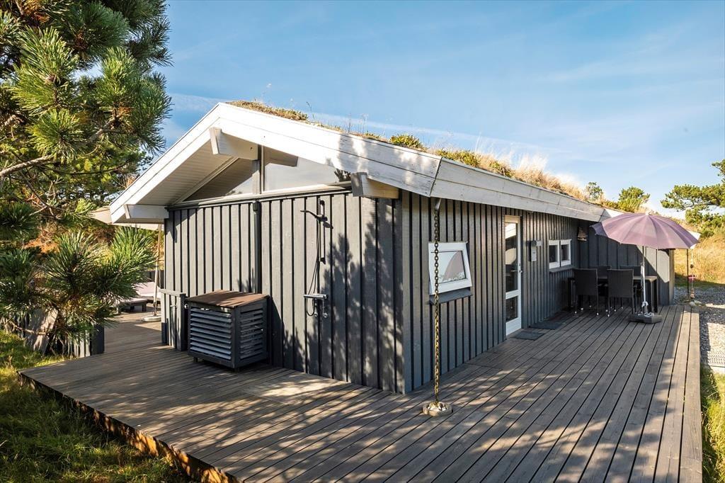 Udenfor finder du den lukkede terrasse, der er den ideelle oase til både afslapning og samvær. Terrasseområdet er perfekt til solrige dage, og her kan du sidde og nyde morgenkaffen eller tage en pause i skyggen af træerne. Den lukkede gårdhave giver jer masser af privatliv, så I kan slappe af uden at blive forstyrret af omverdenen. Det naturskønne område omkring sommerhuset indbyder til lange gåture, hvor I kan udforske skovens og klitternes mange stier. Her er plads til både rolige stunder og aktive oplevelser, alt imens I nyder den unikke natur tæt på.