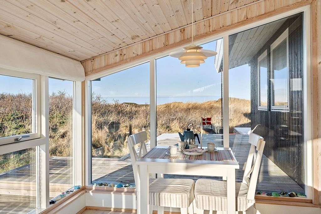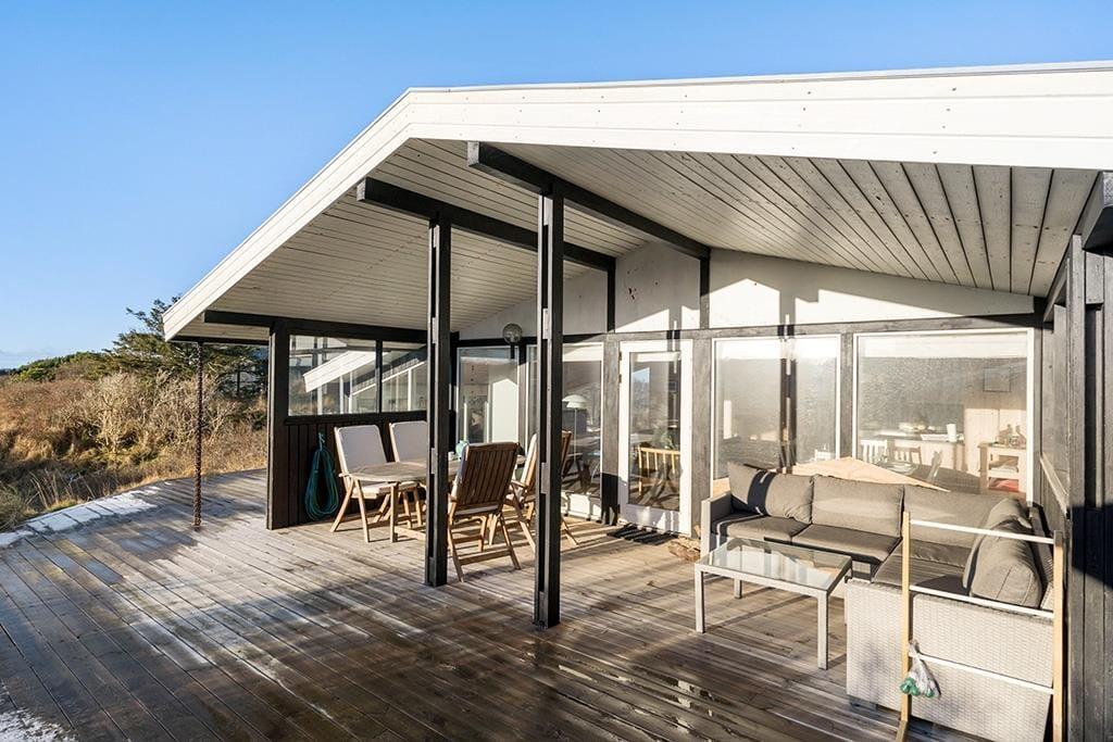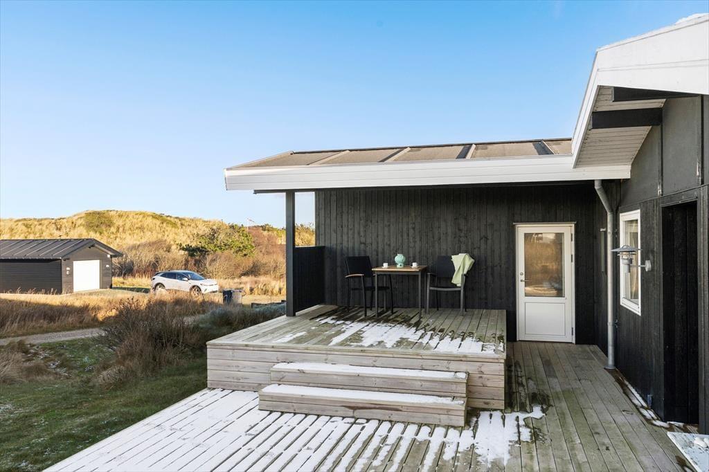 Når du træder ud i den store have og den private terrasse, åbner der sig en helt ny verden af udendørs muligheder. Her er der masser af plads til at nyde solen, spise ude eller bare slappe af og lade roen synke ind. Den naturlige, kuperede grund giver en følelse af frihed og uforstyrrethed, samtidig med at havudsigten giver en ekstra dimension til udendørslivet. Fra terrassen kan du høre havet i det fjerne og mærke den lette brise, mens du nyder din ferie. Naturen er tættere på, end du kunne forestille dig, og du kan tilbringe timevis med at udforske det smukke område, hvor du har både skov og strand lige i nærheden. Det er den perfekte oase til at koble af og finde ro.