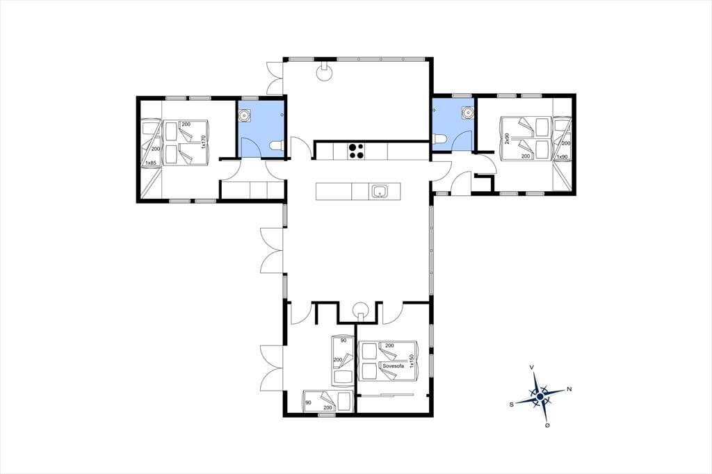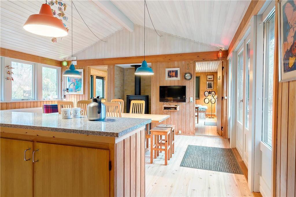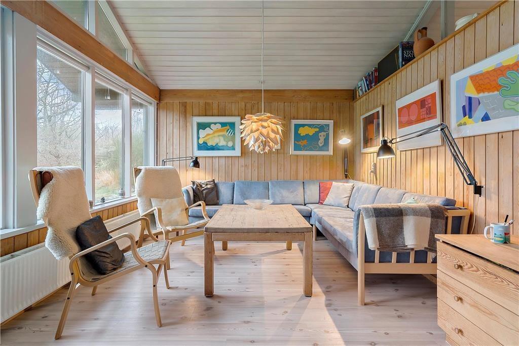 Huset er tegnet af en arkitekt, og man mærker, at der er lagt vægt på rummelighed og funktionalitet i processen. Der er således 4 soverum og to badeværelser, begge med bruser, og dagligdagen kan sagtens fungere med flere familier sammen. Det store køkken har alle tænkelige og moderne hjælpemidler og hænger sammen med spisepladsen, hvor man kan samles til måltiderne eller tage brætspillene frem. Desuden også brændeovn og tv her. I pejsestuen er endnu et tv og en åben pejs, her kan man sidde og lytte til træets knitren i varmen, mens man nyder udsigten over den store og parklignende grund. Endelig er her frit internet (WI-FI) og en wii-spillekonsol med tilhørende sportsspil.