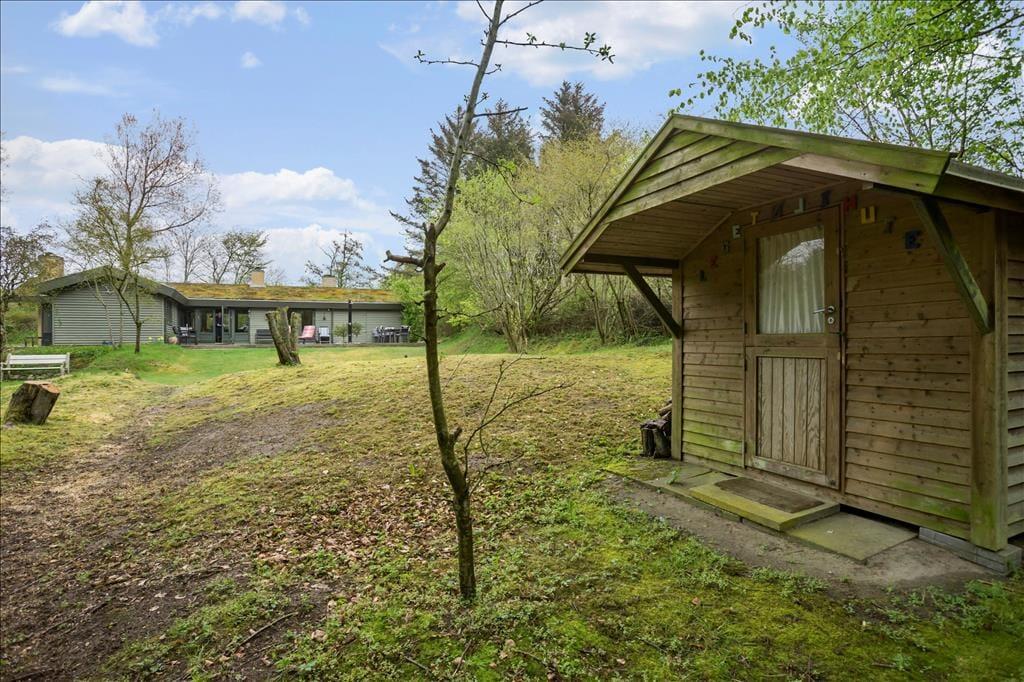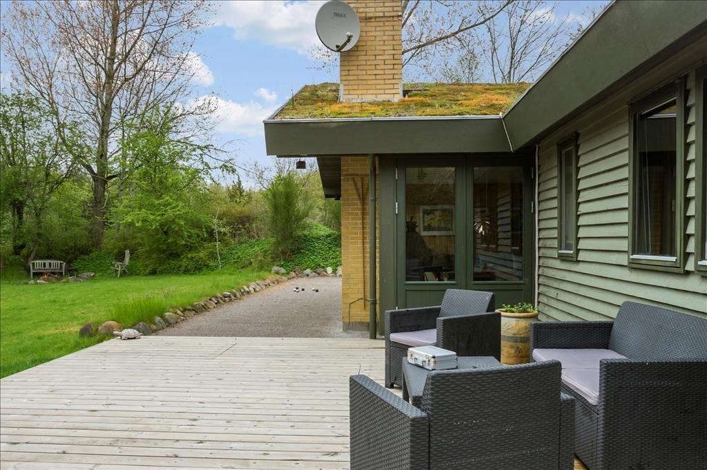 På den kæmpestore og indhegnede grund kan man virkelig nyde den danske sommer på bedste vis. Med i alt 130m2 terrasser mod syd og vest og mange charmerende kroge, er der mulighed for at slappe af, solbade og tanke ny energi. Til børnene er der masser af aktiviteter: gynger, sandkasse, legehus og flere plæner til boldspil og fangeleg. Voksne og børn får med garanti en uforglemmelig ferie i disse smukke og herlige omgivelser. Grunden på de 5000 m2 er et mekka for både børn og voksne og kan rolig betegnes som eget park anlæg.