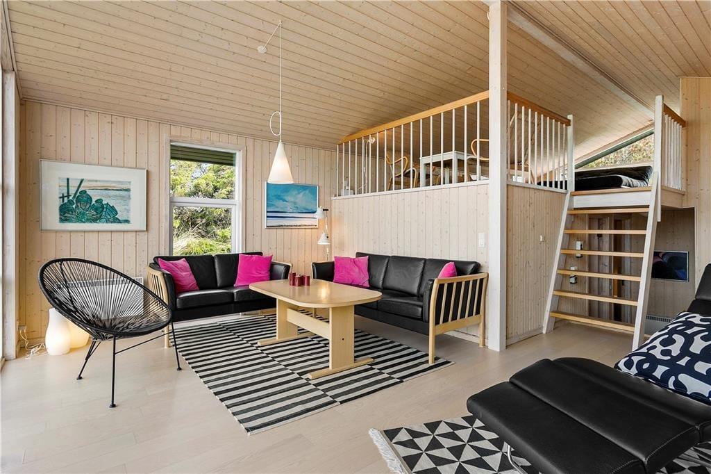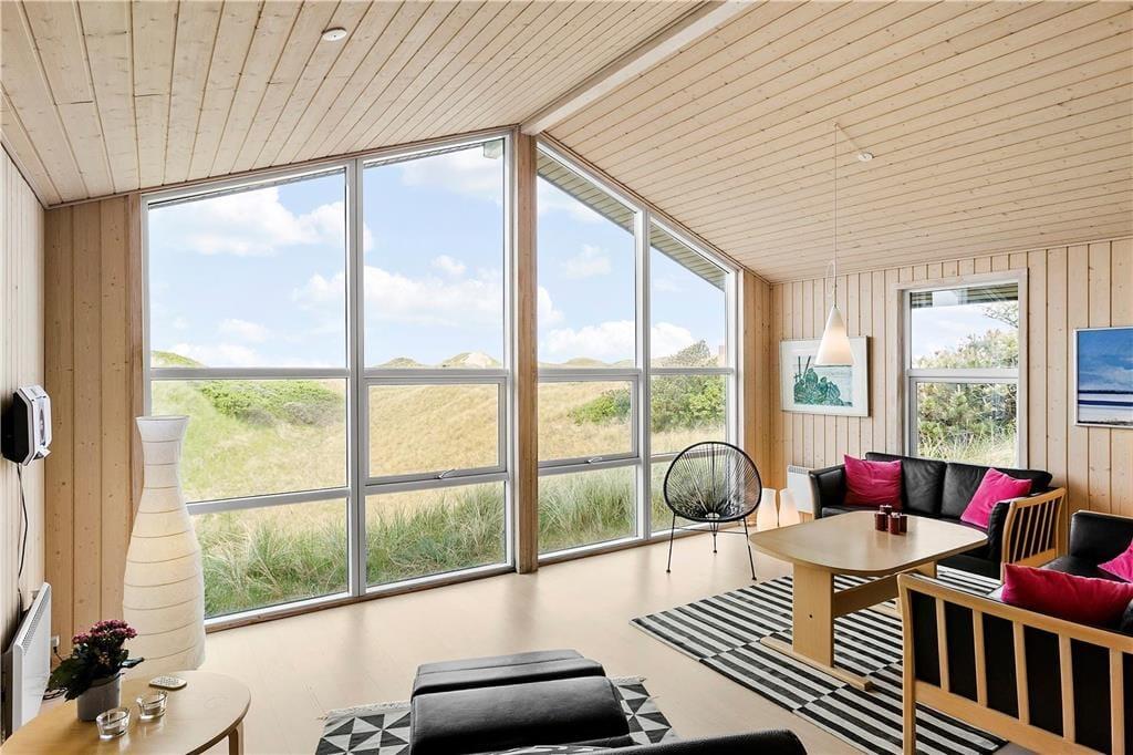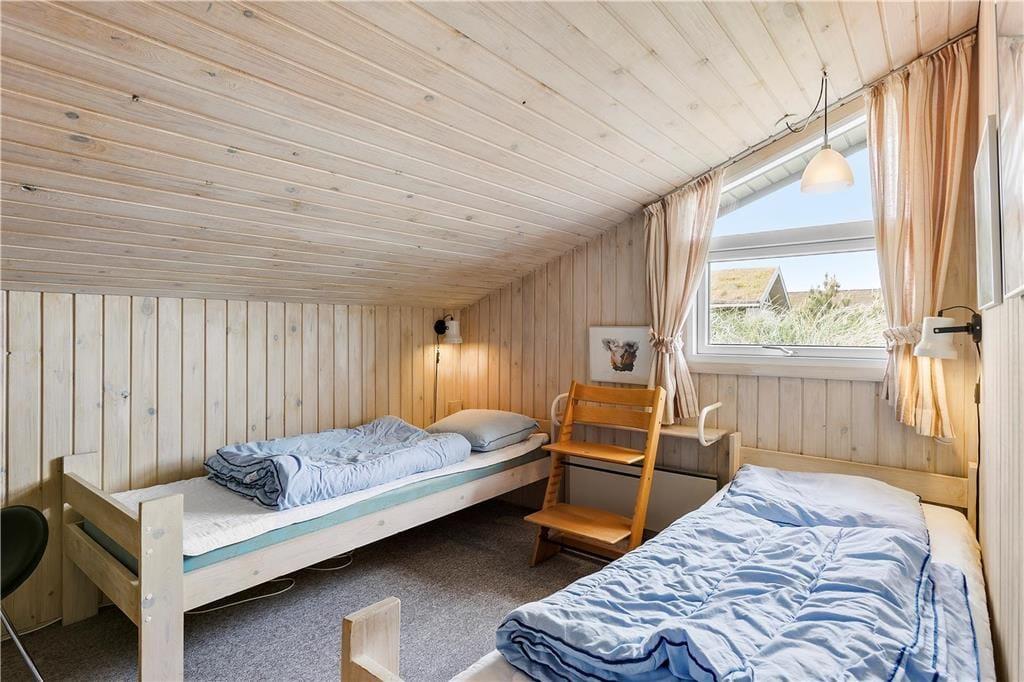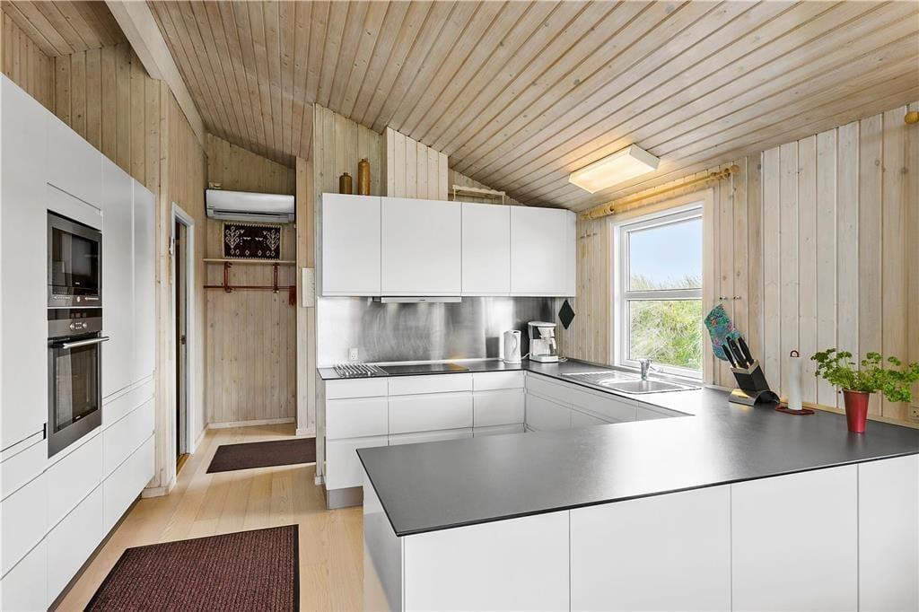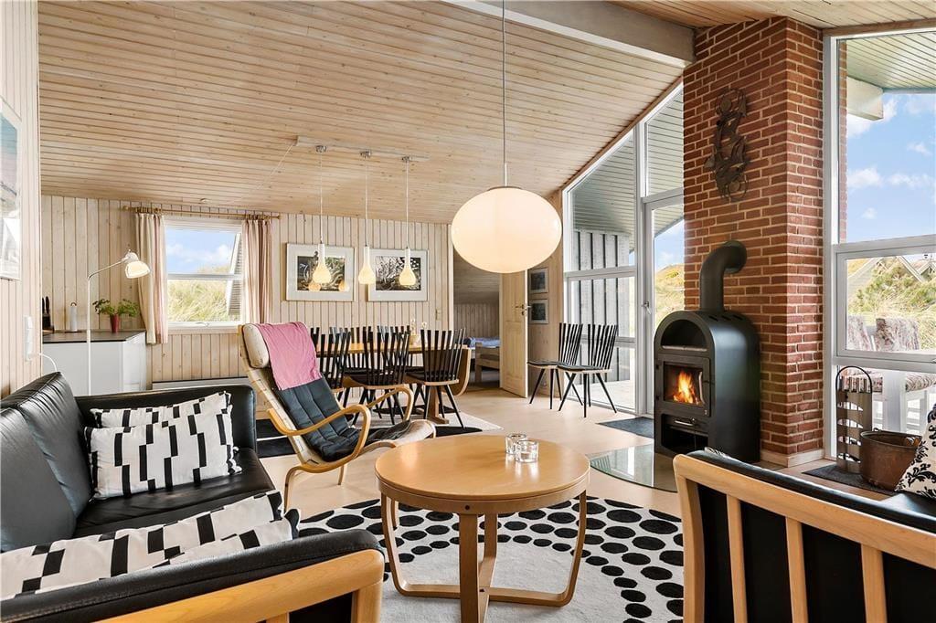 Det første, der møder dig indenfor, er den lyse og åbne indretning, hvor store vinduespartier sørger for et flot udsyn til klitterne. I stuen skaber brændeovnen en hyggelig stemning på kølige dage, og her kan du læne dig tilbage med en god bog eller en kop varm kakao, mens flammerne knitrer i baggrunden. Køkkenet blev moderniseret i 2015 og fremstår både stilfuldt og funktionelt, så det er en fornøjelse at tilberede dagens måltider her. Efter en dag med oplevelser kan du forkæle dig selv med en tur i sommerhusets sauna eller spabad – den perfekte måde at slutte dagen af på.