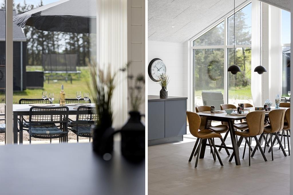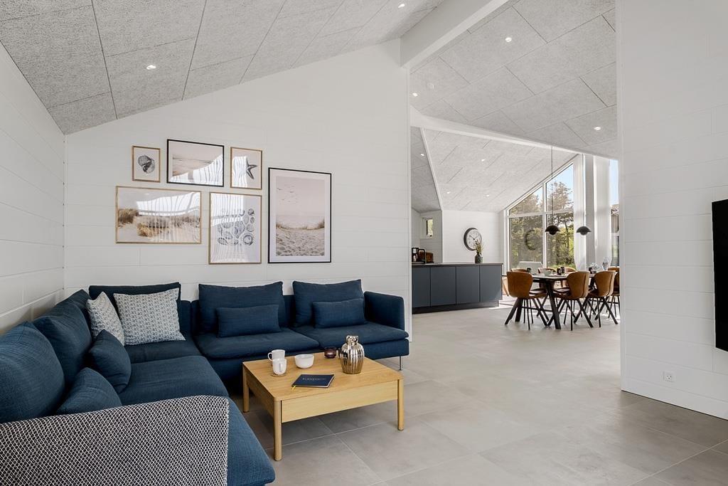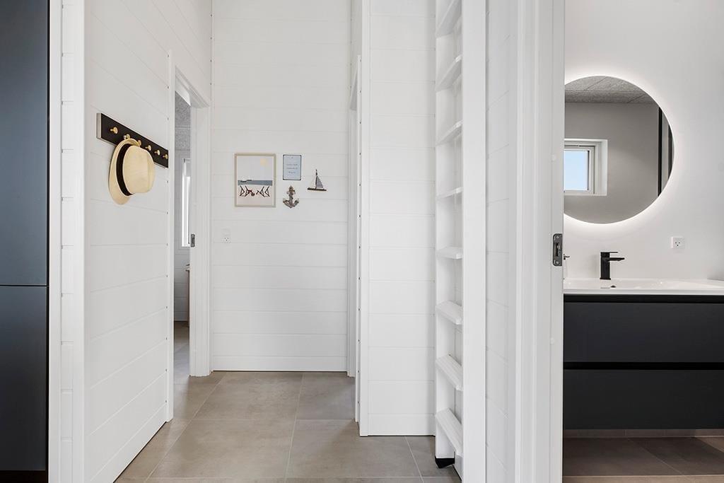 Når du træder ind i dette sommerhus, mødes du af en lys og indbydende atmosfære, hvor moderne design og funktionalitet går hånd i hånd. De åbne opholdsrum indbyder til samvær og hygge, hvad enten det er omkring spisebordet med en hjemmelavet middag eller i sofaen med en god bog. De store vinduespartier lader dagslyset strømme ind og skaber en naturlig forbindelse mellem inde og ude. Køkkenet er udstyret med moderne faciliteter, der gør madlavningen til en leg, og de komfortable soveværelser sikrer en god nats søvn efter en dag fyldt med oplevelser.