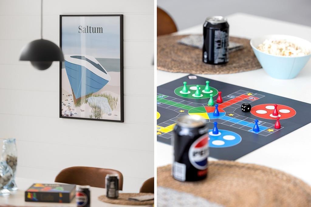 Beliggende i det rolige og naturskønne område Saltum, er sommerhuset det perfekte udgangspunkt for at udforske Nordjyllands mange attraktioner. En kort køretur bringer dig til den brede sandstrand ved Vesterhavet, hvor du kan bade, gå lange ture eller bare nyde solnedgangen over havet. Fårup Sommerland, en af Danmarks mest populære forlystelsesparker, ligger også i nærheden og byder på sjov for hele familien. Derudover finder du hyggelige byer som Blokhus og Løkken i området, hvor du kan shoppe, spise på gode restauranter eller besøge lokale gallerier og museer.