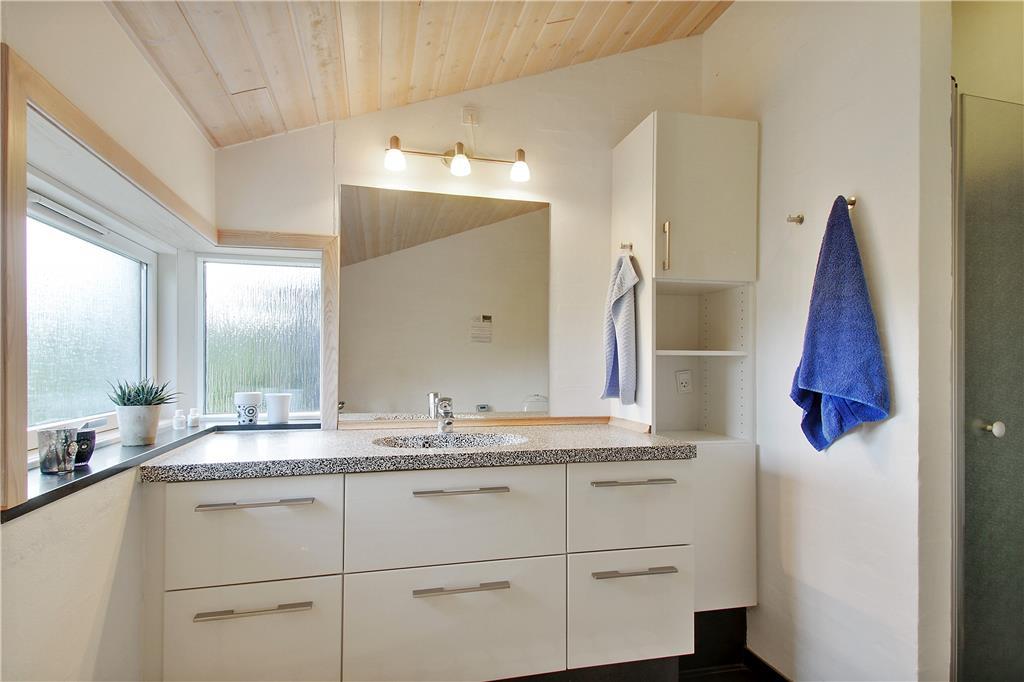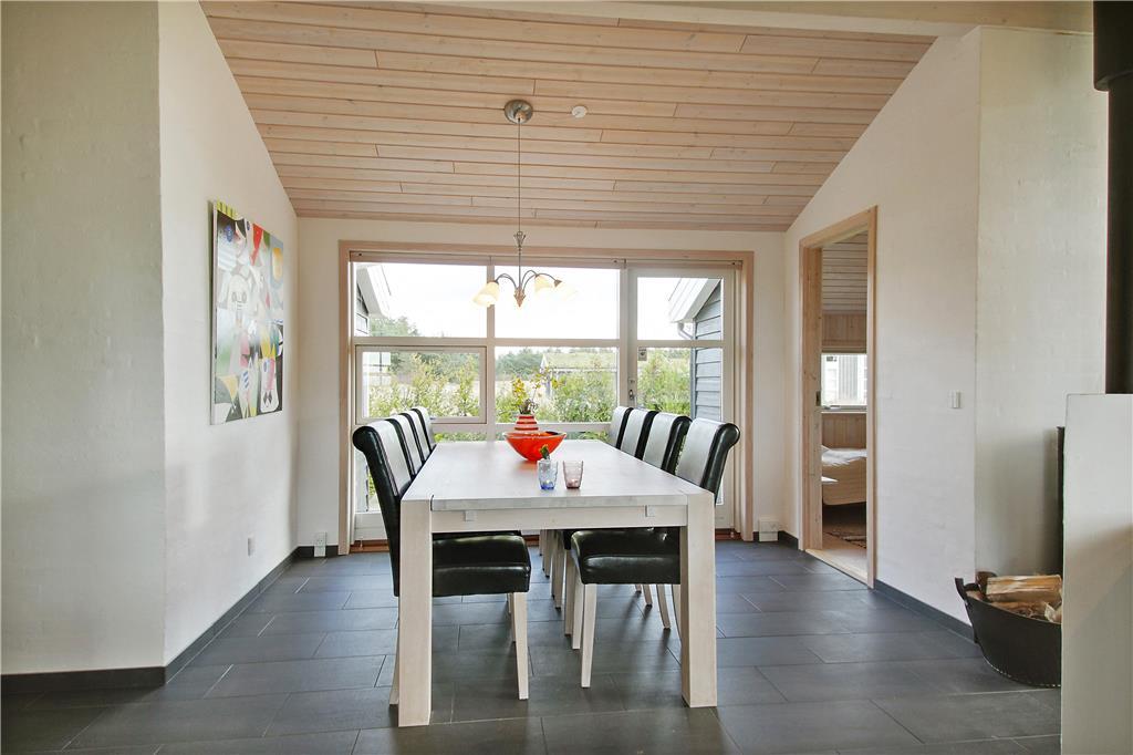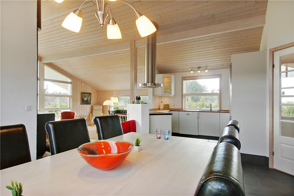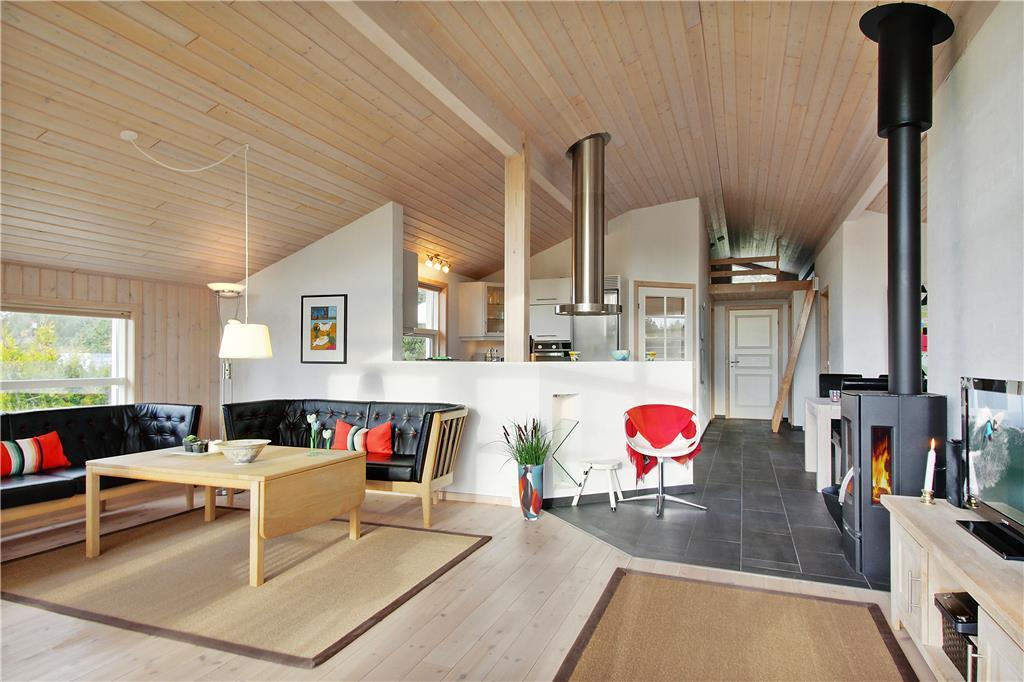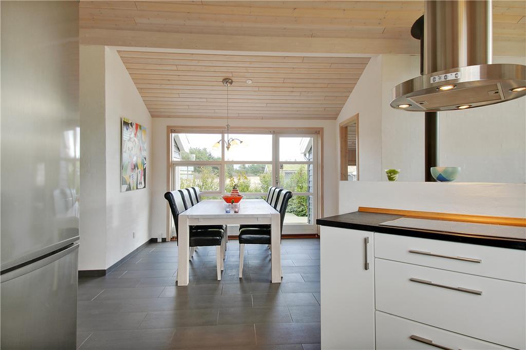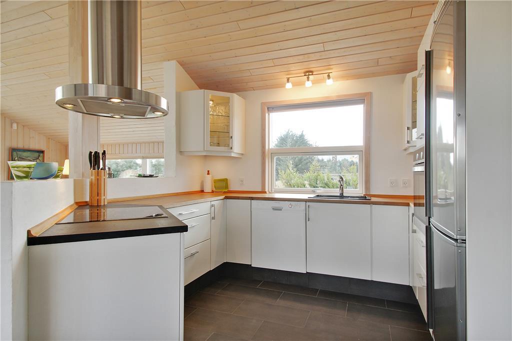 Sommerhuset her har ikke mange år på bagen og er opført i de bedste materialer og med den højeste kvalitet for øje. Indretningen er lys, bekvem og stilfuld, her er højt til loftet og det smukke nordjyske lys strømmer ind ad de store vinduespartier. Møblerne er moderne, og ejernes sans for at skabe en hyggelig og varm atmosfære skinner igennem i valget af tekstiler, brugskunst og lamper; alle detaljer går op i en smuk og harmonisk helhed. Sommerhuset er udstyret med fire soverum og to badeværelser og egner sig dermed både til en stor familie eller til to mindre, og det store opholdsrum med åbent køkken, spiseplads og stue fungerer fint som det centrale samlingspunkt. Holder man ferie i de kolde måneder eller er sommermorgenerne lidt kølige, er det dejligt at tænde op i brændeovnen og slappe af til lyden af det knitrende træ. I kommer heller ikke til at mangle noget hvad angår komfort og moderne faciliteter: her er både vaskemaskine, tørretumbler, opvaskemaskine, spabad, sauna, varmepumpe og parabol med danske og tyske kanaler. Oveni dette er sommerhuset kategoriseret som allergivenligt og af den grund er det derfor ikke tilladt at medbringe dyr på ferien.