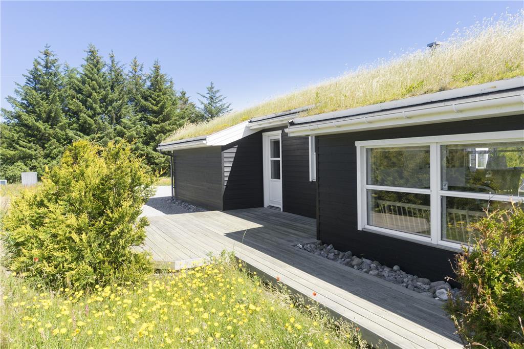 Sommerhuset ligger på en stor, plan naturgrund på en rolig stikvej uden meget trafik og støj. Huset har hele tre gode terrasser med små buske omkring til at skærme for vinden. Den ene terrasse er delvist overdækket, her kan I med fordel grille, spise og sidde til langt ud på aftenen. Havemøbler, grill, parasol og liggestole er naturligvis til rådighed.