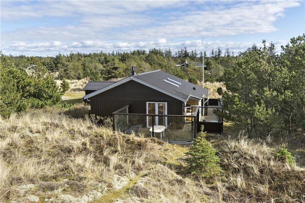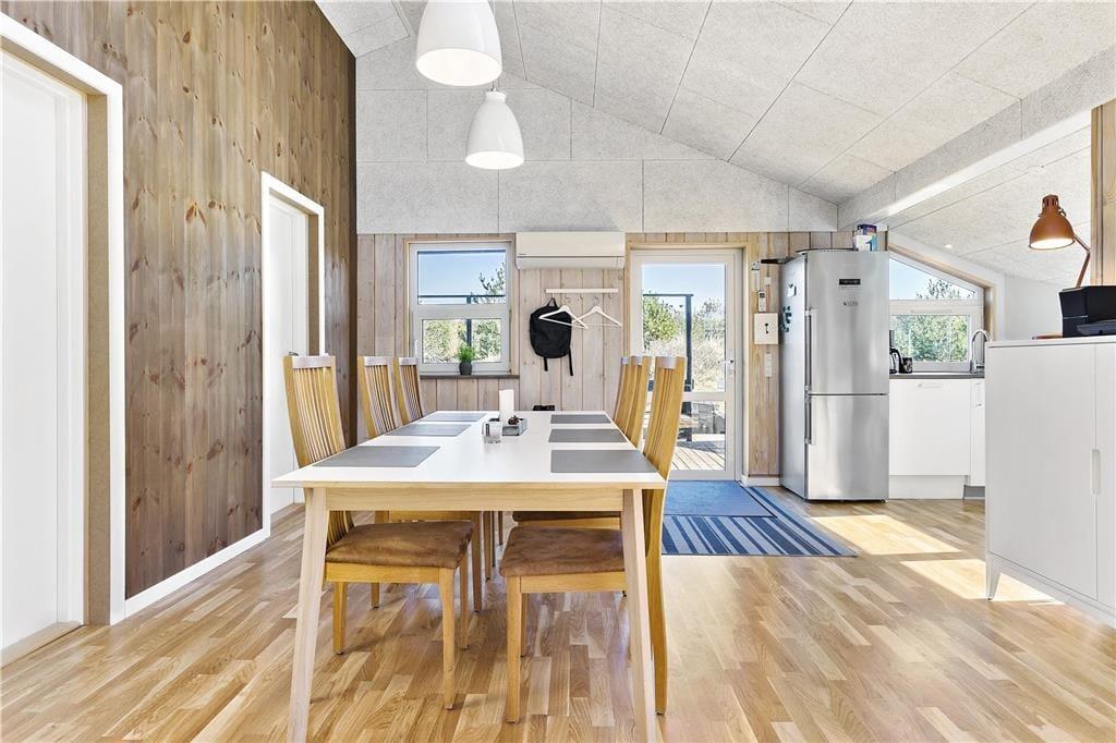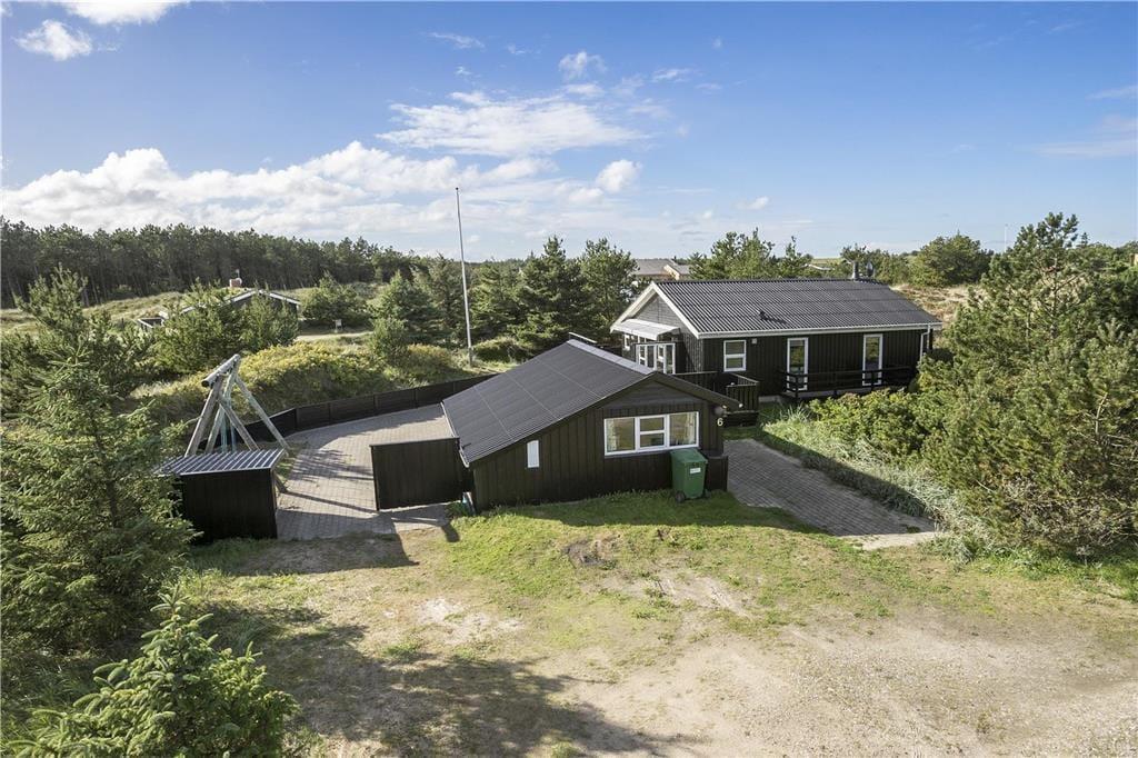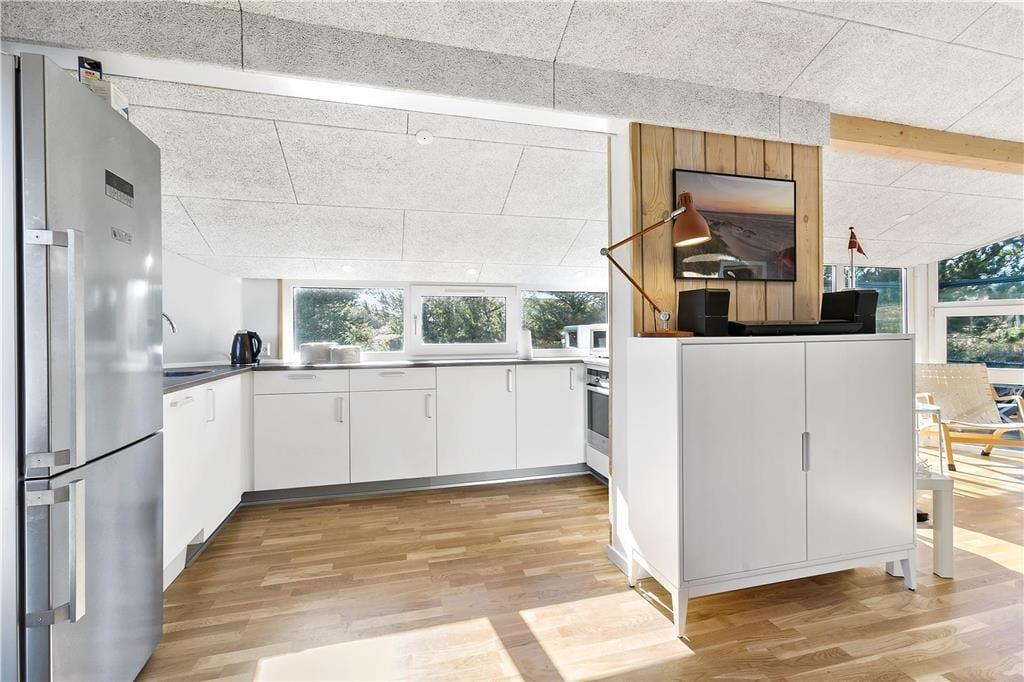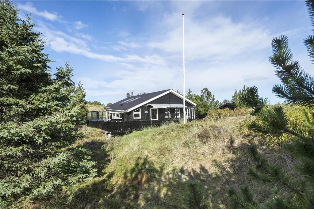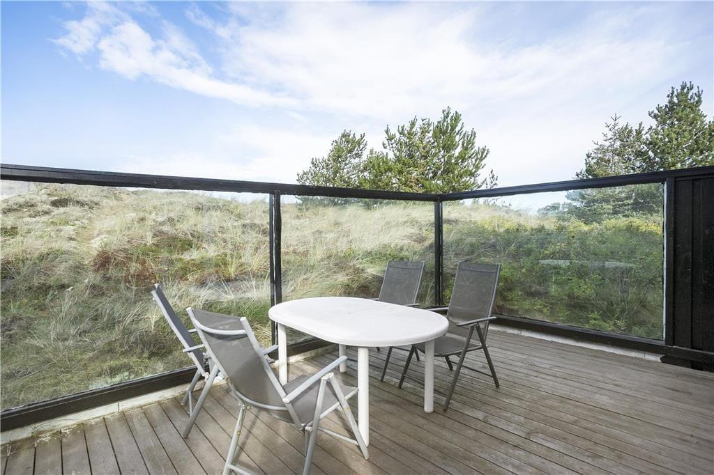 Udendørs kan du virkelig nyde ferielivet på den store terrasse, som omgiver huset. Den sydvendte terrasse giver dig mulighed for at finde sol hele dagen og nyde de smukke omgivelser med udsigt til klitlandskabet. Uanset om du vil nyde morgenkaffen i solen, slappe af med en god bog eller nyde et måltid under åben himmel, er der altid en dejlig plads på terrassen. Den ugenerte placering betyder, at du kan være helt for dig selv, mens du nyder den friske luft. Det er også et perfekt sted at samle familien og hygge sig på de lune sommeraftener, mens brændeovnen står klar til at skabe ekstra varme på de køligere dage.