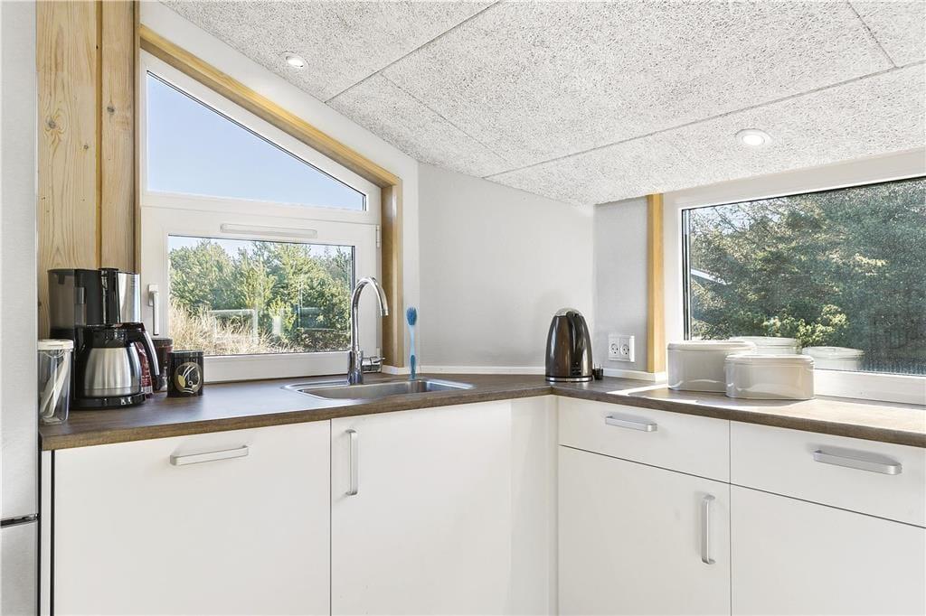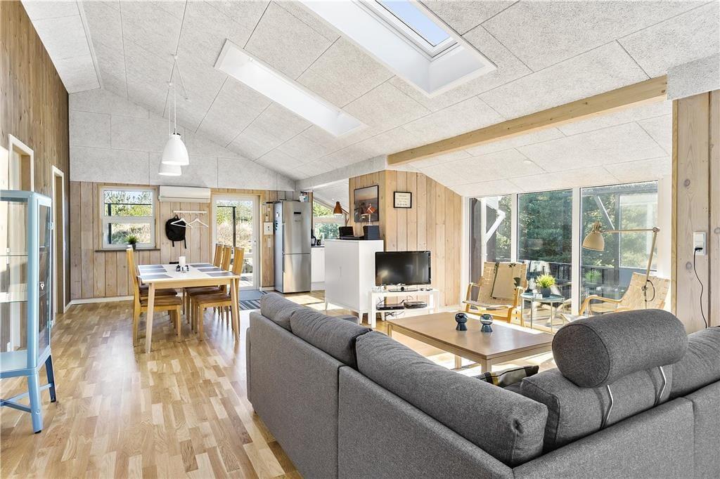 Når du træder ind i sommerhuset, bliver du mødt af en lys og indbydende atmosfære, hvor den gennemgribende renovering i 2018 tydeligt kommer til udtryk. Den hyggelige indretning, de stilfulde møbler og den varme brændeovn i stuen indbyder til afslapning, og her kan du samles med familie eller venner foran ilden på en kold aften. Stuen er både rummelig og komfortabel, og de store vinduer giver et smukt udsyn til det omkringliggende landskab. Huset har flere hyggelige kroge, hvor du kan nyde en god bog, spille brætspil eller bare slappe af. Anneksdelen giver ekstra plads og fungerer perfekt, hvis du ønsker lidt privatliv. Huset er ideelt til en ferie, hvor både komfort og hygge går hånd i hånd.