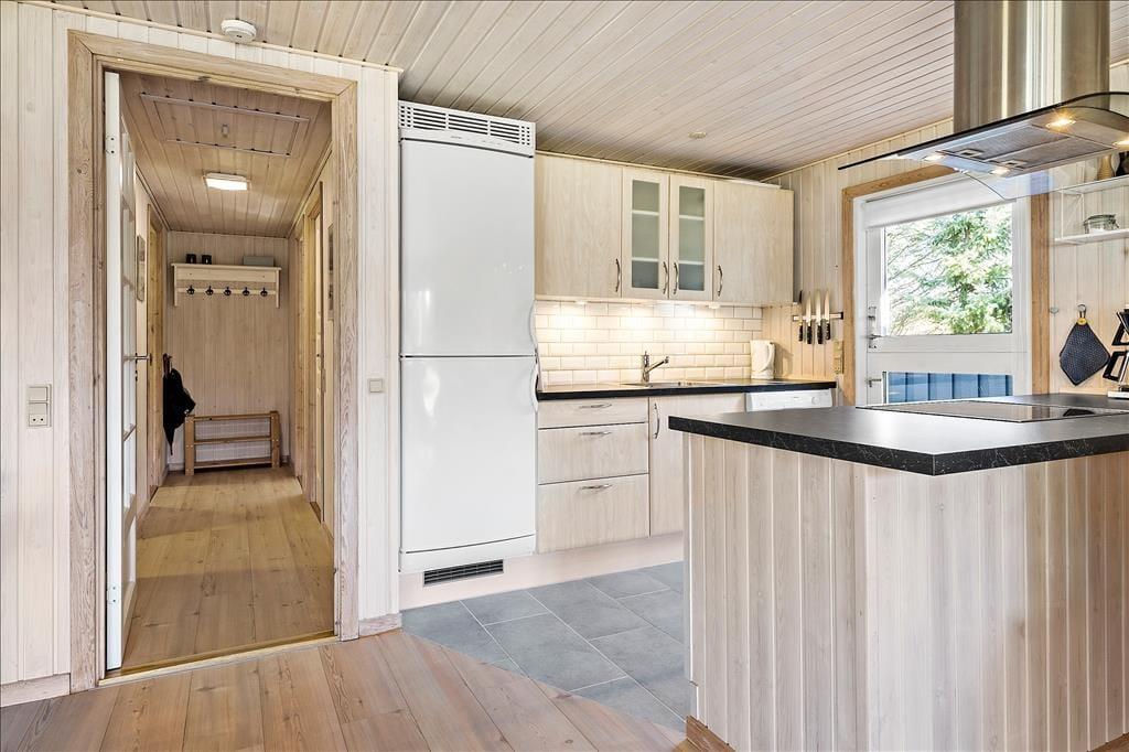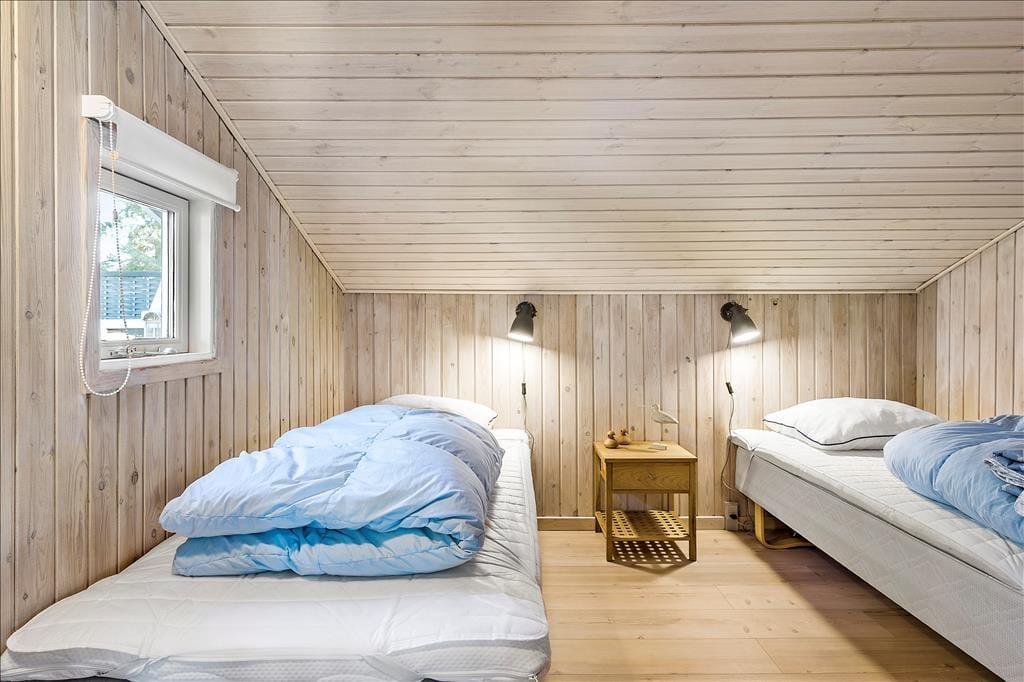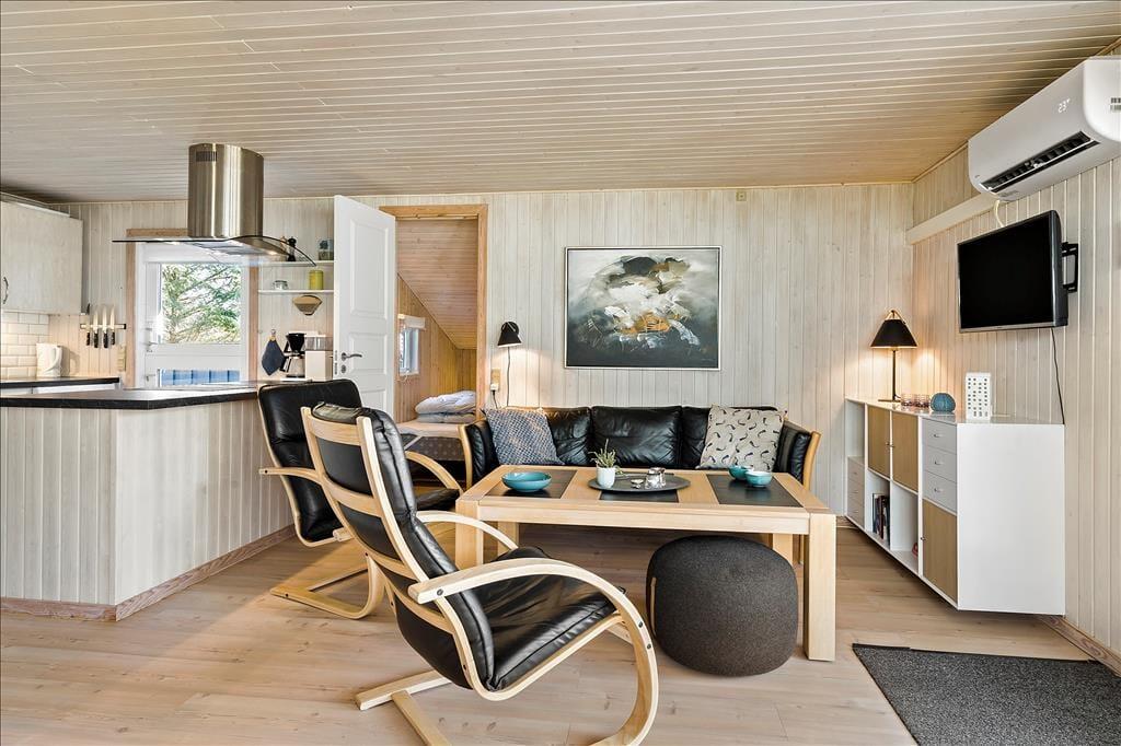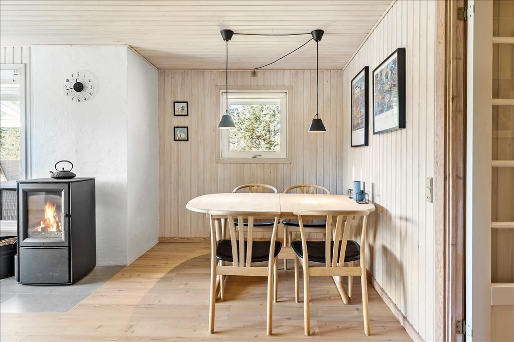 Sommerhuset er opført i 1985 og er i årenes løb blevet godt og grundigt vedligeholdt, så alt stadig i dag er i den skønneste orden. Huset består af fire soveværelser, et badeværelse og et åbent køkken-alrum med stue, hvor hele familien kan samles til måltiderne og hygge foran brændeovnen. De tre soveværelser har hhv. to dobbeltsenge, 2 enkeltsenge, så der er rig mulighed for at dele sig op efter behov, og har man mindre børn med, som skal puttes lidt tidligt, kan man med fordel lukke døren mellem gangen og stuen, så der er ro i begge lejre. Sommerhuset har opvaskemaskine, parabol med en del udenlandske og danske kanaler, og endelig kan man bruge det trådløse internet, hvis men medbringer pc eller tablets hjemmefra. Stuen har store vinduer, som lader det nordjyske lys trænge helt ind i rummet, og hele huset har en varm og hjemlig atmosfære, hvor alle hurtigt vil finde sig til rette. Skønne og velfungerende rammer for familier såvel som for par.