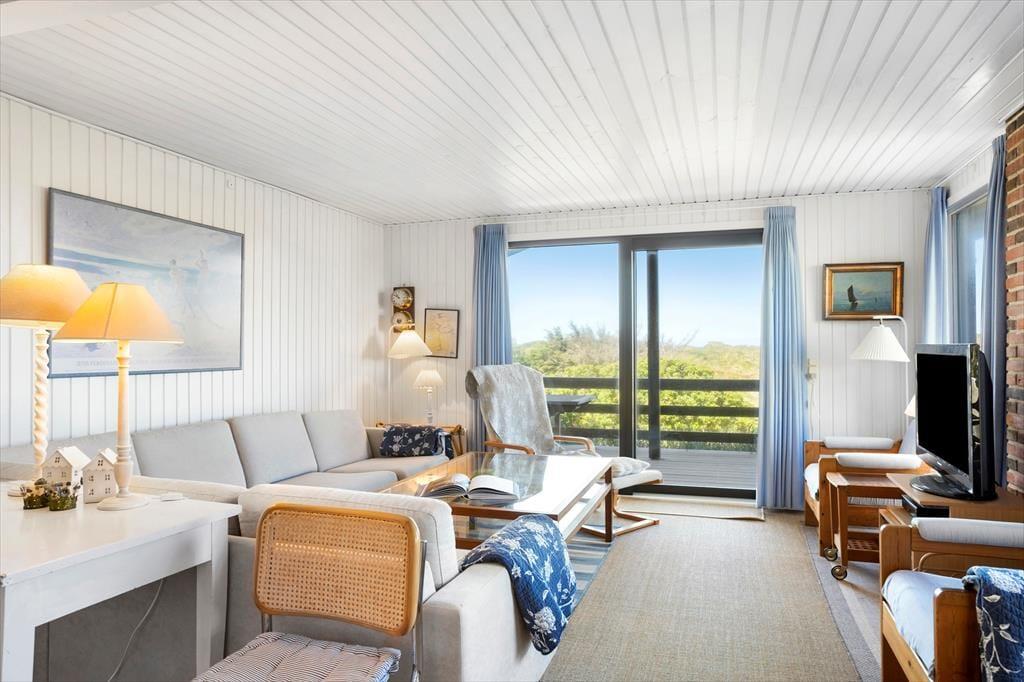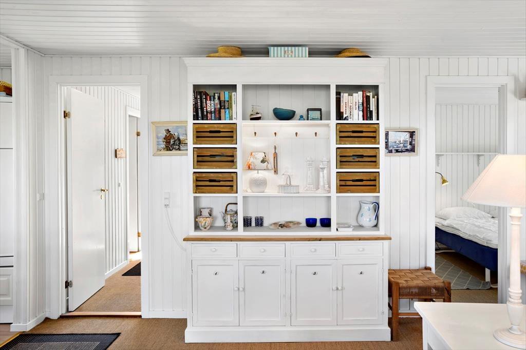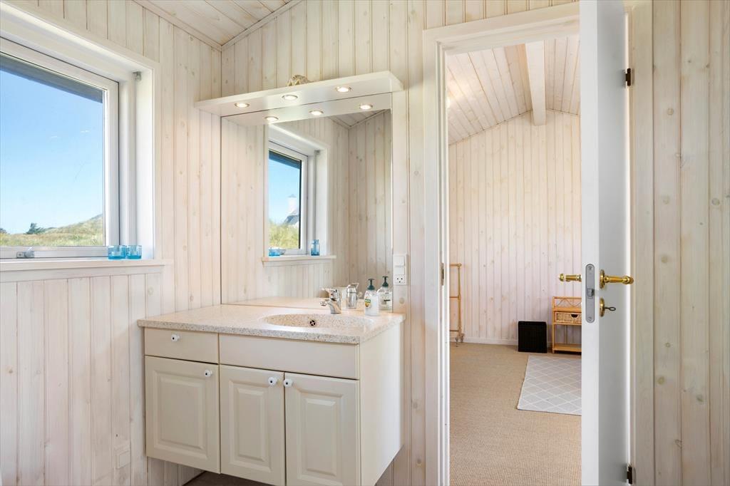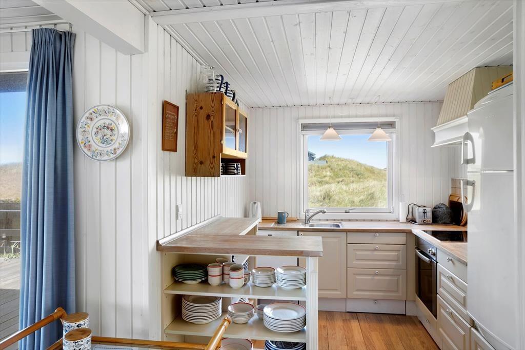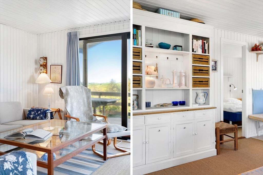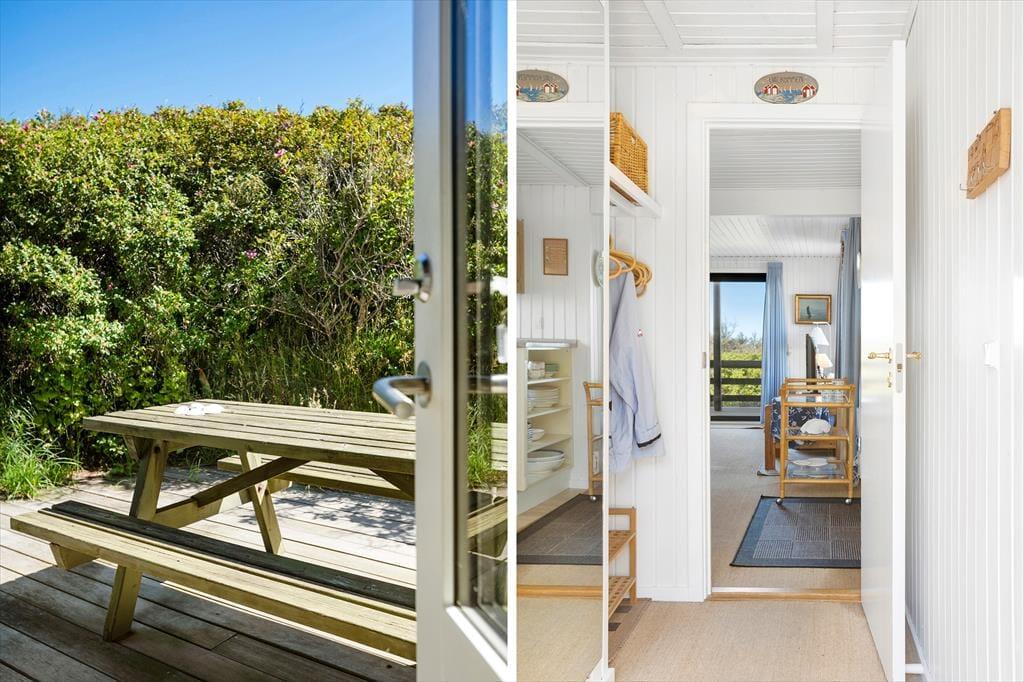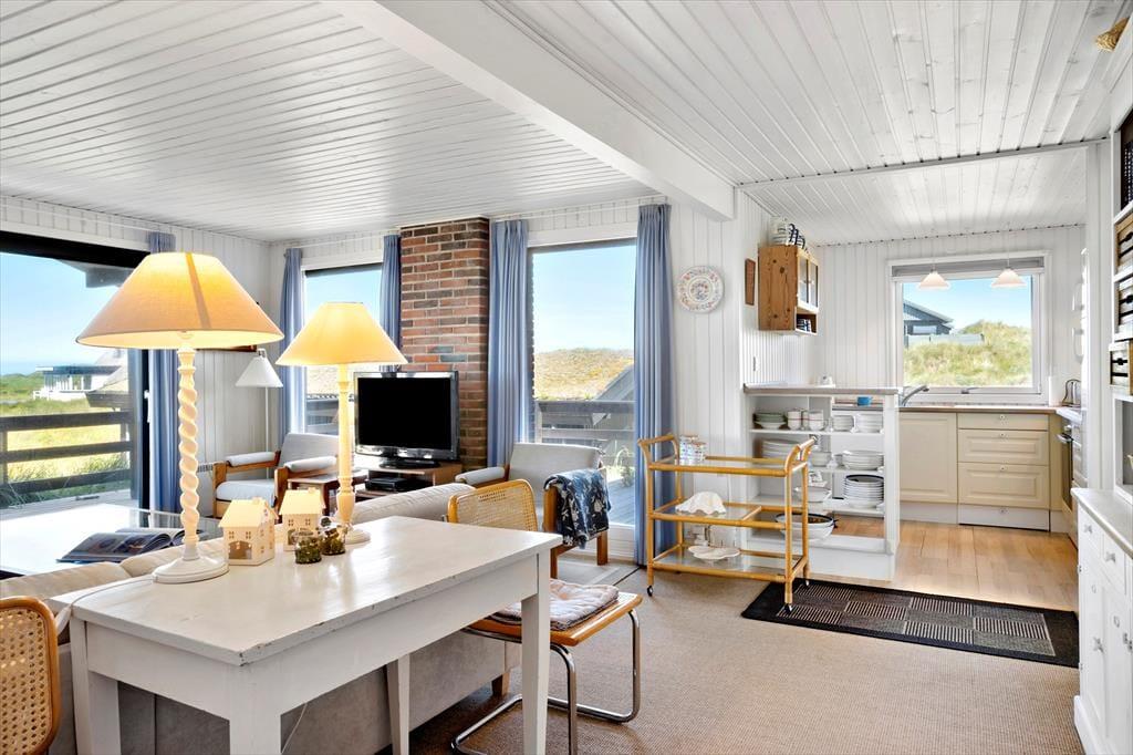 Her er der rigtig sommerhus-stemning for alle pengene. Huset består af to separate huse. I hovedhuset finder I en skøn stue og spise afdeling, hvorfra man kan nyde udsigten til klitplantagen. I et af de skønneste og mest attraktive områder i Saltum. Huset er hyggeligt indrettet og holdt i charmerende stil. Fra spiseafdelingen er der udgang til lækker vestvendt terrasse hvor et rigtigt godt vindspejl er med til at I kan nyde naturen, også selvom Vestenvinden skulle vise sig fra sin friske side. Køkkenet er forholdsvis nyt og som resten af huset holdt i en charmerende stil. Et hus man ikke kan undgår at blive lidt stil-mæssigt forelsket i. Trods den charmerende sommerhusstil finder I naturligvis de fleste moderne bekvemmeligheder såsom opvaskemaskine, vaskemaskine, parabol med skandinaviske og tyske kanaler, samt frit internet så tag endelig computer eller tablet med på ferien. Badeværelset er hyggeligt indrettet, igen i charmerende stil med bruser og toilet. Her finder I også husets vaskemaskine. I hovedhuset finder I soverummet med dobbeltseng. Derudover er der et ekstra værelse som er ejers private og ikke står til rådighed.