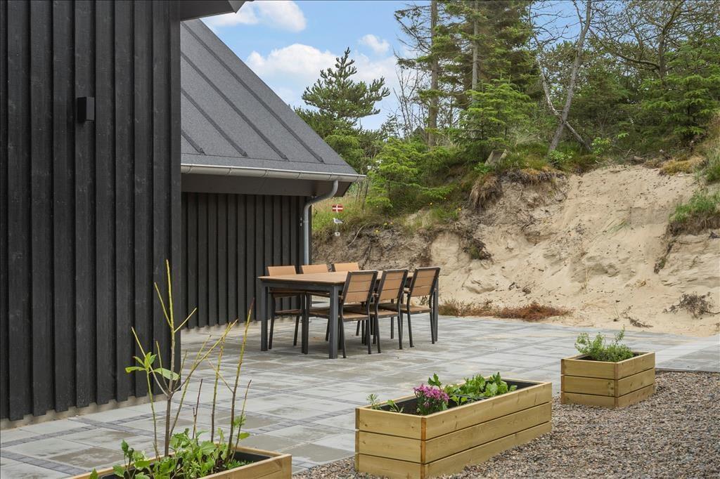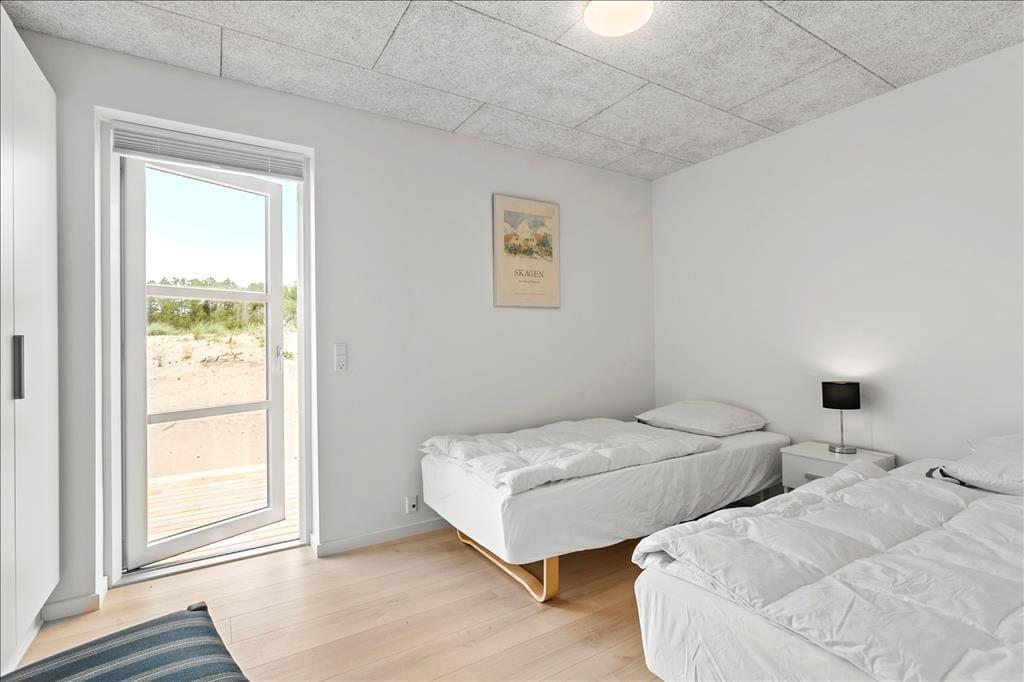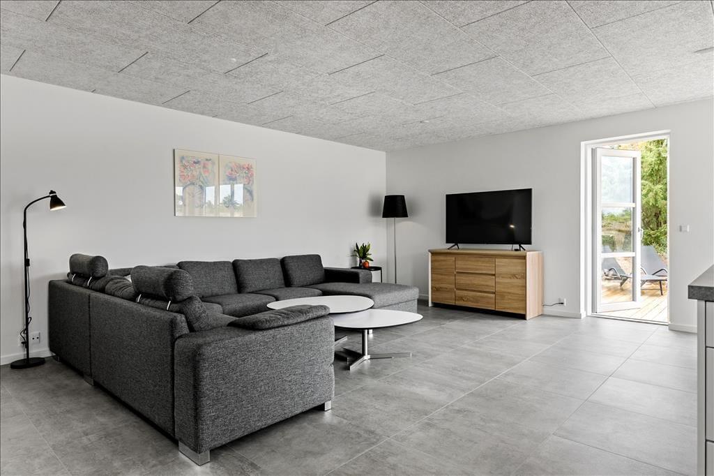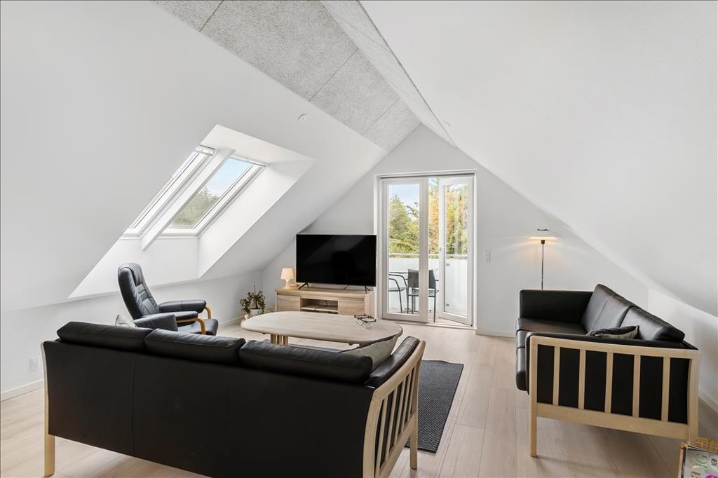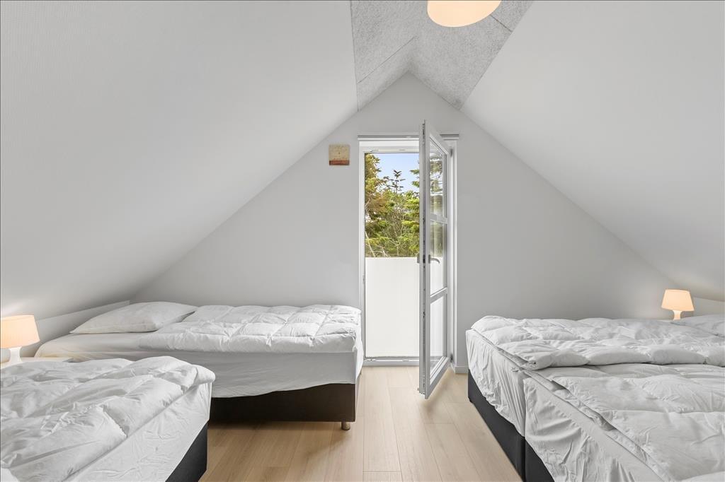 Når I holder ferie i et nybygget sommerhus som dette, kan I regne med, at alt bare spiller. Rummene er lyst og indbydende indrettet, og der er mange lækre detaljer at hæfte sig ved – for eksempel er det åbne køkken udstyret med amerikanerkøleskab og andre gode hvidevarer, og der er i alt tre fladskærms-tv placeret rundt omkring i huset. Det ene tv, som har tilsluttet Chromecast, står i stueetagens køkken-alrum, som er et flot opholdsrum med sofaafdeling, spisebord og havedør lige ud til terrassen. Et andet godt samlingspunkt er førstesalens stue, som charmerer med loft til kip, skråvinduer og en vestvendt altan. Sommerhuset byder for øvrigt også på fire soveværelser, to badeværelser og en rummelig entré med vaskefaciliteter skjult bag skabsvæggen.