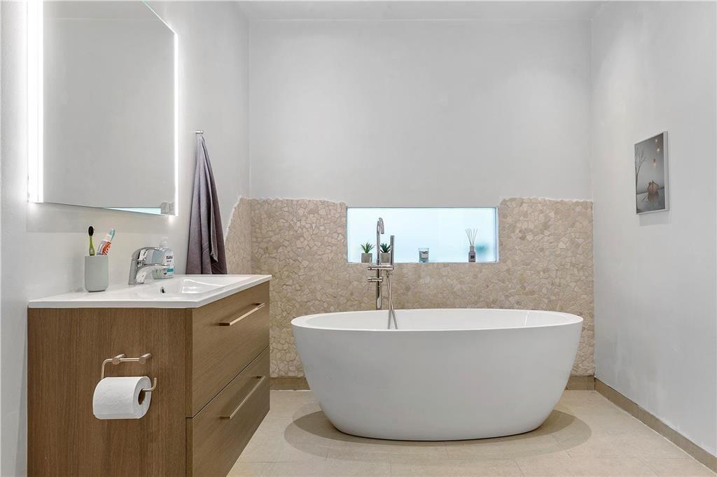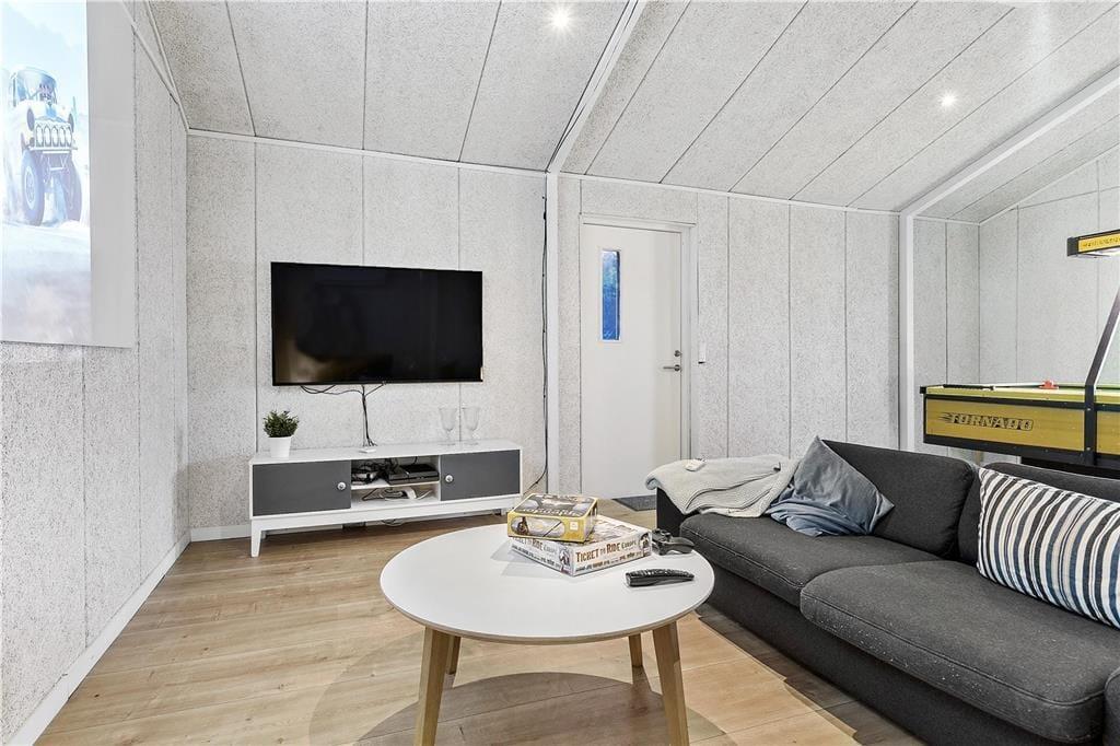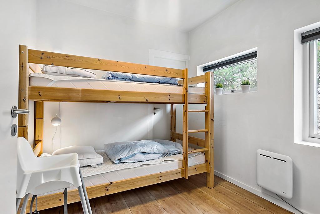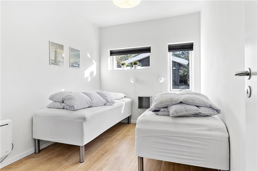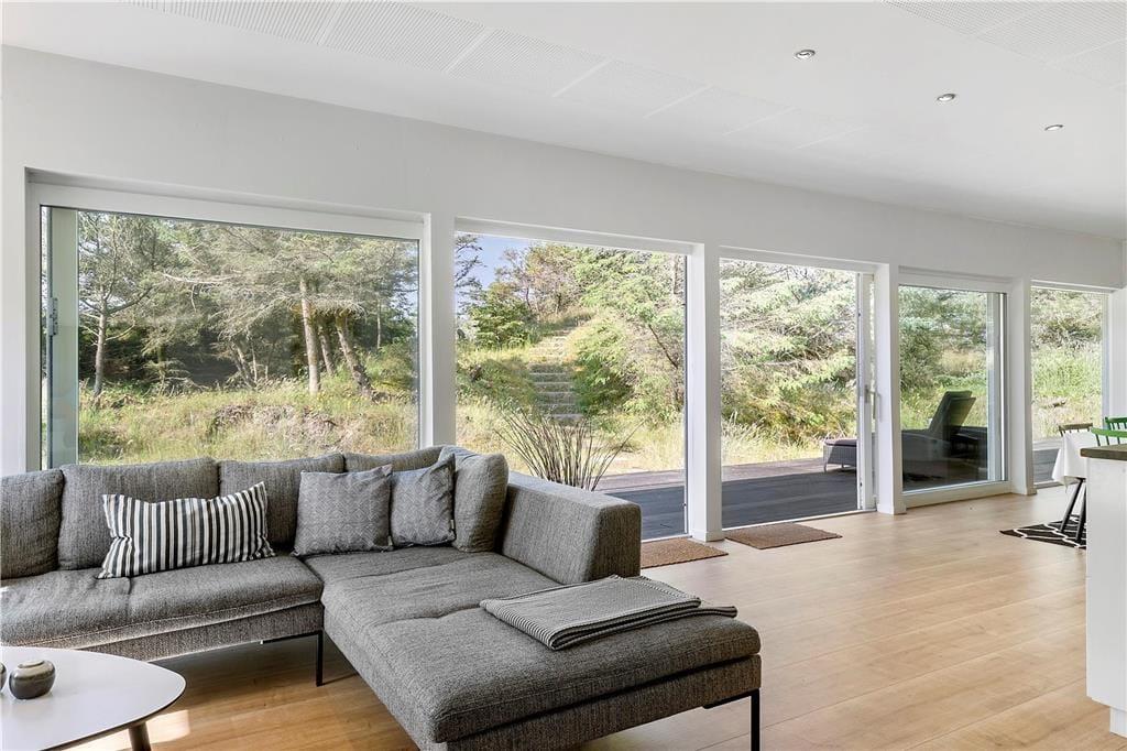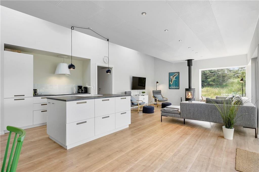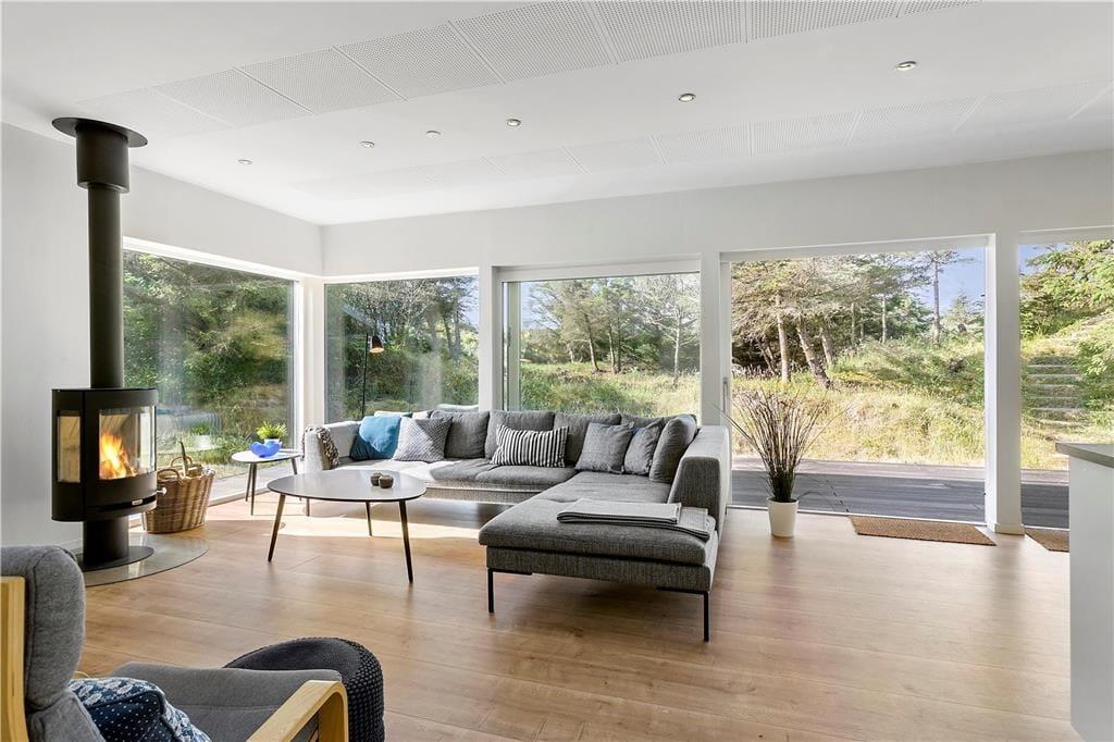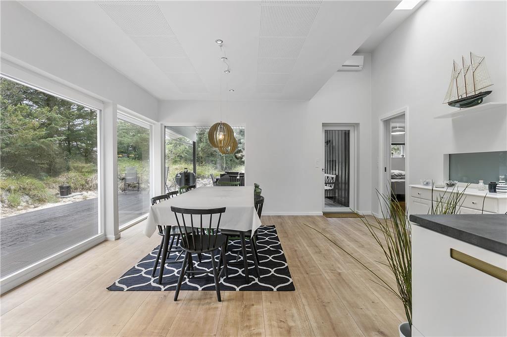Sommerhuset er opført i 2018 og domineres af de store gulv-til-loft vinduer og har et fantastisk lysindfald. Indretningen er moderne, men med en varm og afslappet stemning, hvor der er tænkt over alle detaljer. Det største rum er det åbne opholdsrum med køkken, spiseplads og stue; med ild i brændeovnen kan man skrue op for hyggen på en kold dag, og på de varme sommerdage er det nemt at åbne op til den store terrasse. Man kan være op til otte personer i sommerhuset, alle værelser har gode senge, så man er sikker på at vågne udhvilede op til en aktiv dag. Begge badeværelser har dampbrusere, og det ene har derudover et flot og lækkert badekar, hvor man rigtig kan slappe af efter en lang dag ved stranden. Sommerhuset har alt i hårde hvidevarer, inkl. vaskemaskine så man kan nøjes med at pakke den lille kuffert,; og med parabol og gratis Wi-Fi er man sikker på at kunne følge med i nyhederne, modtage vigtige mails og streame det nyeste afsnit af yndlingsserien. Alt i alt et fantastisk flot og velfungerende sommerhus, som alle vil finde sig godt tilrette i.