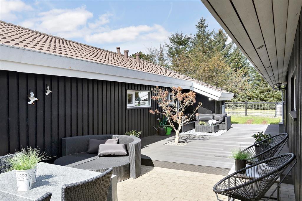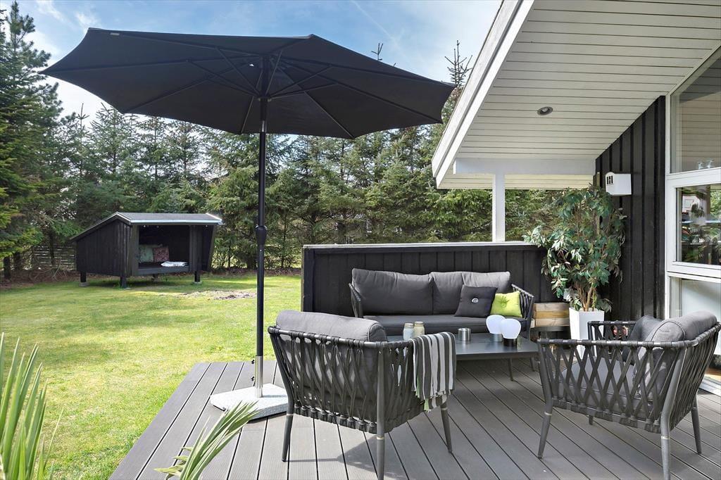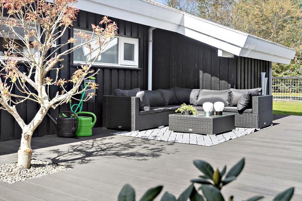 Terrassen er også et godt sted at samles, for her er godt at være, når solen skinner, og den danske sommer viser sig fra sin smukke side. Der er god plads til at sidde i smørhullet mellem sommerhuset og annekset, hvis ikke I hellere vil opholde jer på det sydvendte og delvist overdækkede terrasseområde. Det meste af den 1397 m2 store grund er enkelt holdt med græsplæne og randbeplantning, og det grønne areal er for øvrigt aflukket, så børn og hunde kan lege og løbe frit.