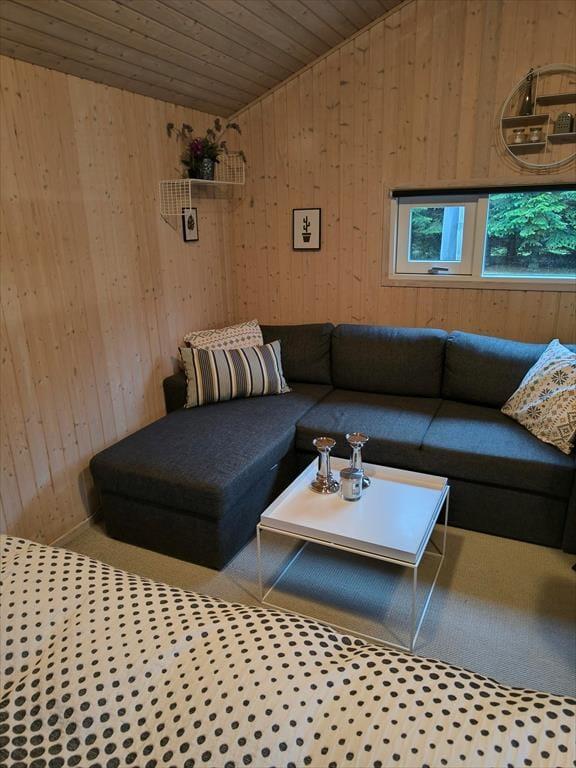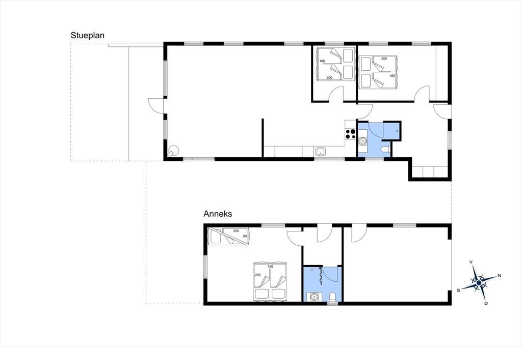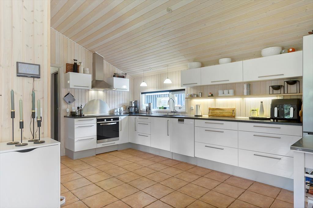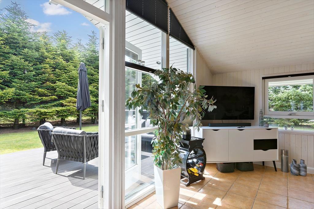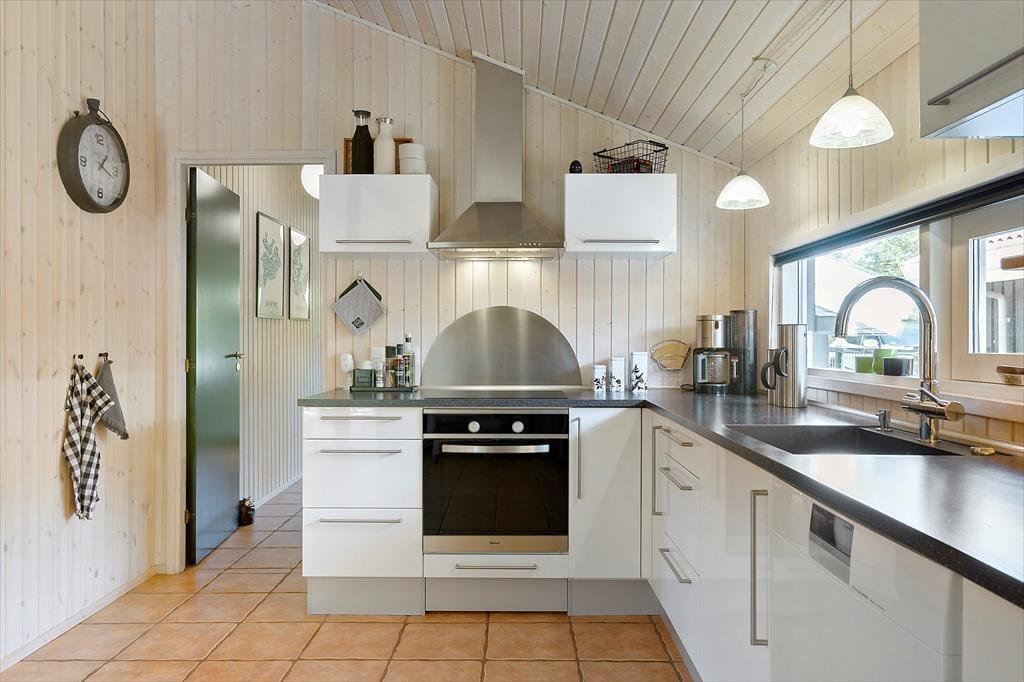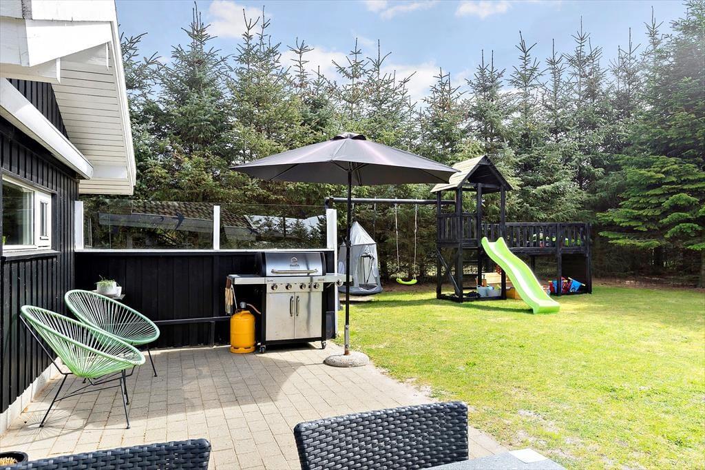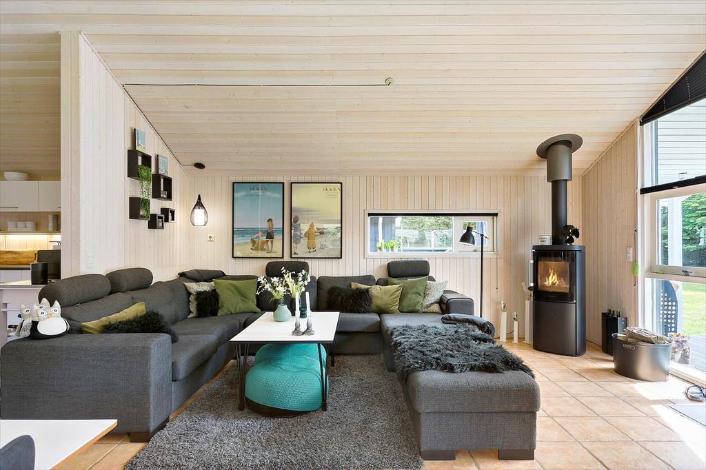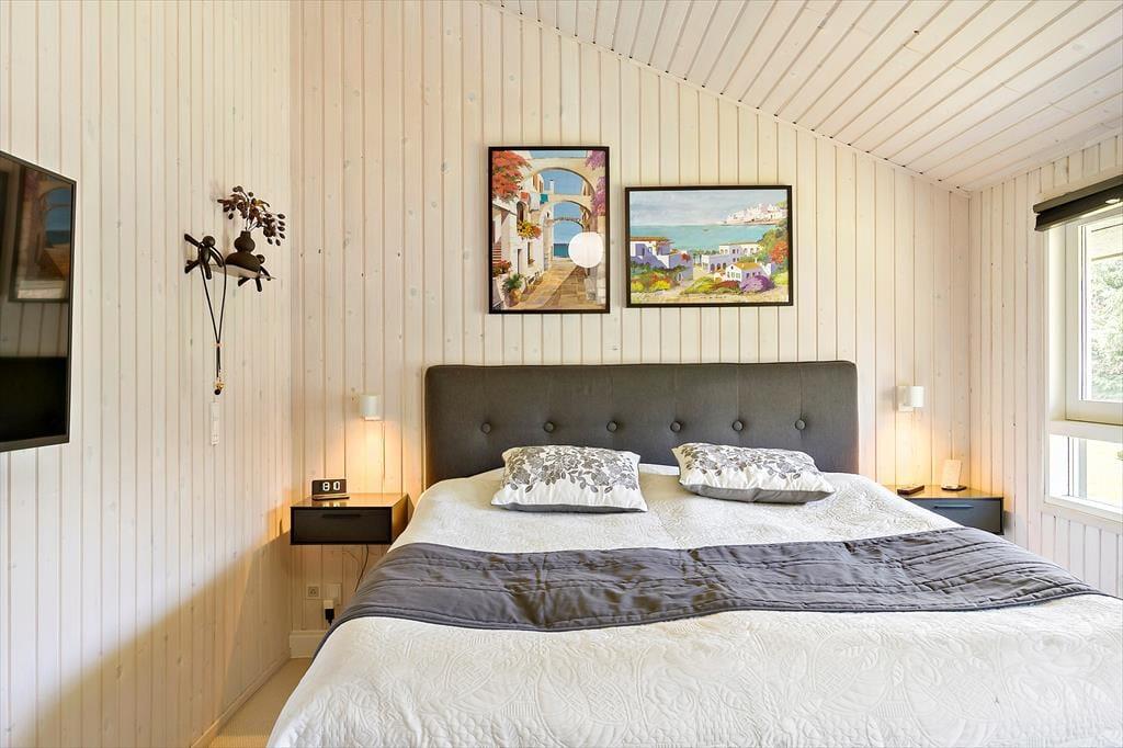 Hvis I gerne vil holde ferie sammen med familie eller venner, er huset her et godt bud, for der er nemlig plads til otte personer inden døre. De mange kvadratmeter fordeler sig på sommerhuset og annekset: Sidstnævnte har eget badeværelse, og der er både dobbeltseng, køjeseng og en dobbelt sovesofa i rummet, så det kan snildt fungere som en hyggelig sovesal for de yngste feriegæster – eller for eksempelvis en børnefamilie. I selve sommerhuset er der selvfølgelig også et badeværelse foruden et godt bryggers og to soveværelser med dobbeltseng. Endelig er der opholdsrummet, som er et dejligt rum med et veludstyret køkken, brændeovn, en rummelig sofaafdeling og et stort spisebord, hvor I kan samles til morgen, middag og aften. Huset er udstyret med energibesparende hårde hvidevarer , airfryer og quooker som ligeledes gør sit til en god ferie