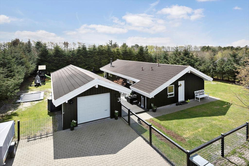 På en lille, lukket vej i Saltum Strandpark finder I dette store og velindrettede sommerhus. Med til huset hører et anneks, og grunden er helt lukket, hvilket kan glæde både småbørnsforældre og hundeejere.