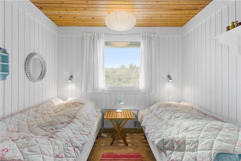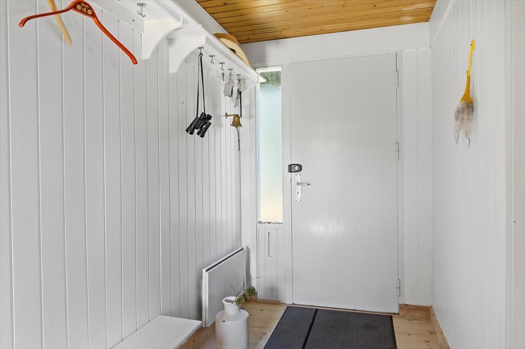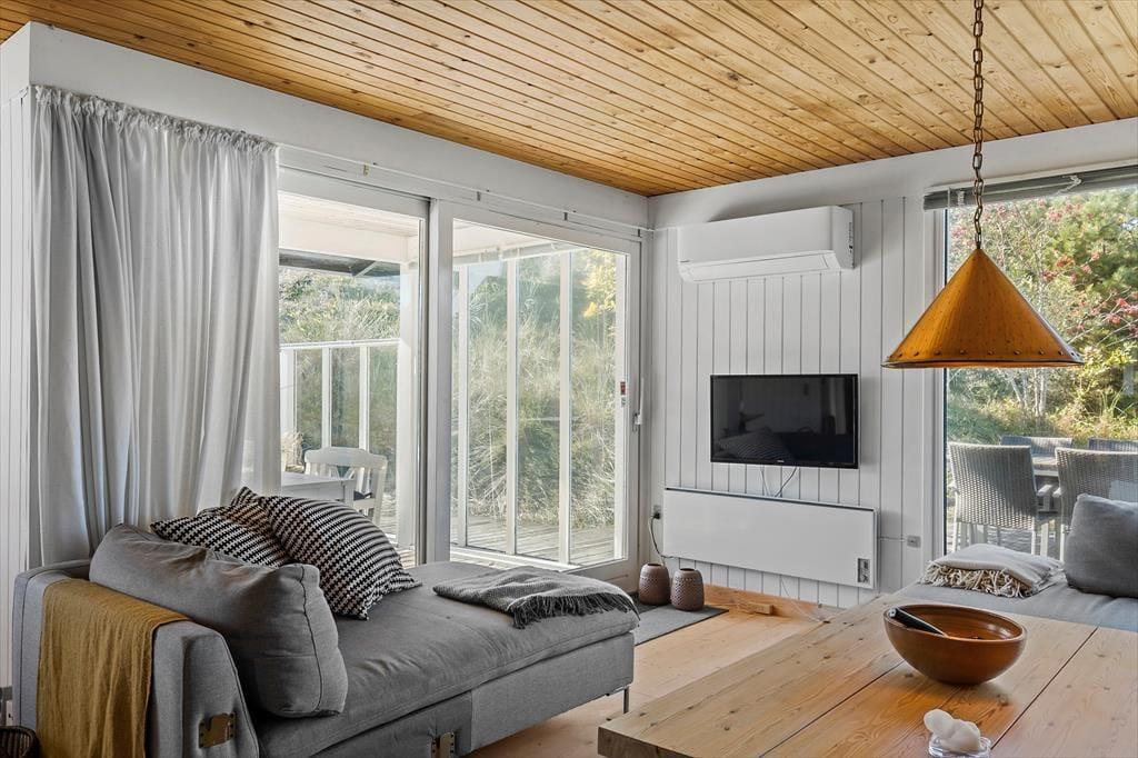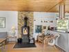 I sommerhuset har man formået at skabe en fin balance mellem retro og moderne, så de indendørs arealer virker både hyggelige og funktionelle. Farvetonerne er lyse, og de mange charmerende indretningsdetaljer giver det den helt rette sommerhusfornemmelse, der leder tankerne hen på endeløse feriedage uden faste planer. Har I lyst til at hygge jer inden døre, kan I samles i sommerhusets store opholdsrum, hvor stue og køkken er forenet. Her er der brændeovn til de kølige dage og aftner, og hvis sommersolen skinner, kan I hurtigt skyde havedørene til side, så der er direkte kontakt med terrassen. Uanset årstiden er det herligt at kunne sove, så længe I lyster på de fire soveværelser – og hvis I er utålmodige efter at komme af sted på udflugt, kan I hurtigt børste tænder og få et brusebad på badeværelset.