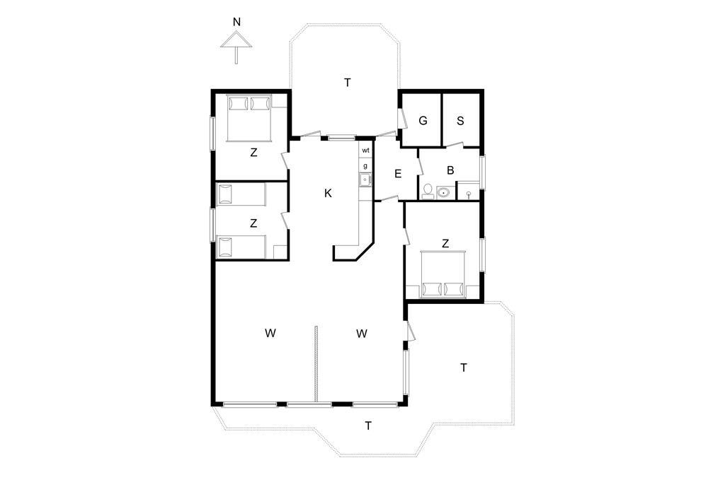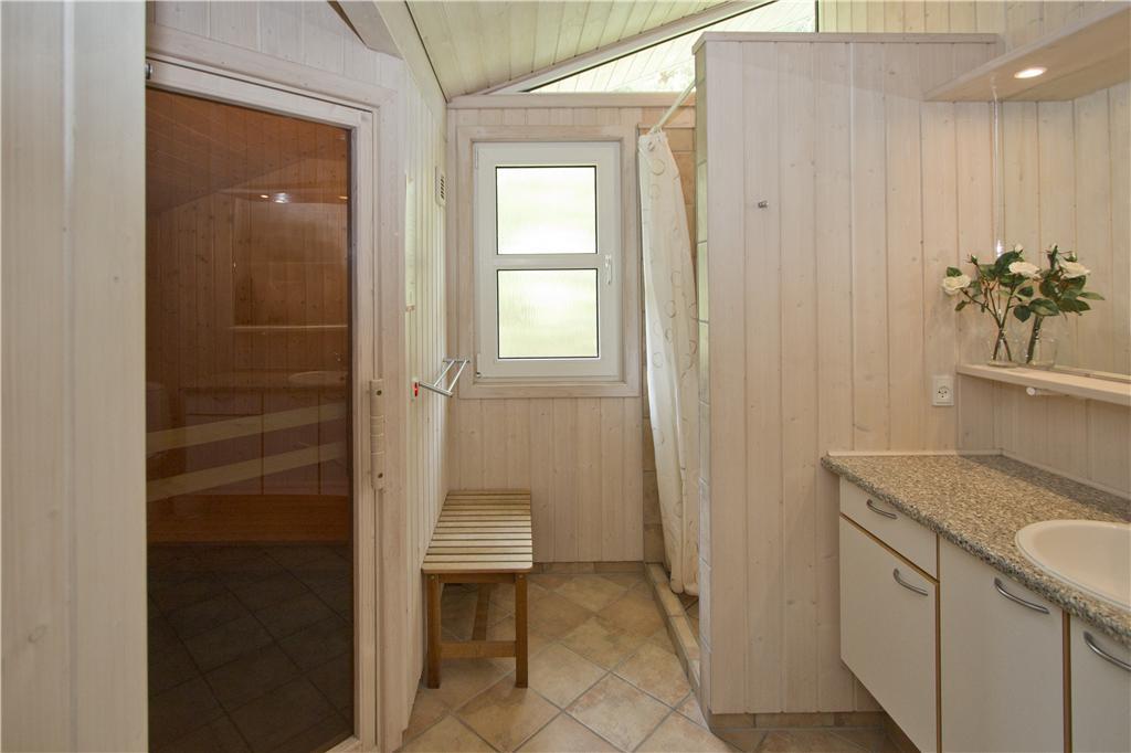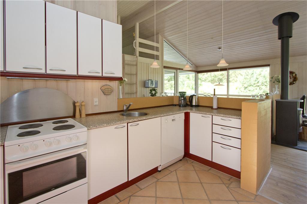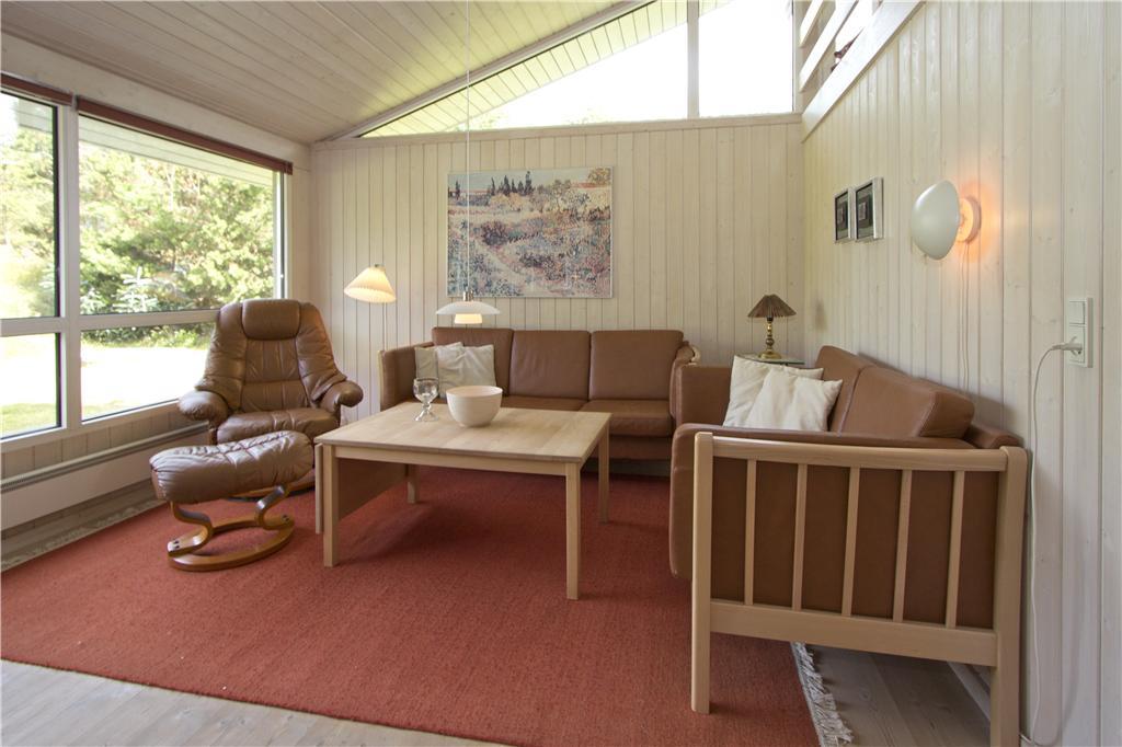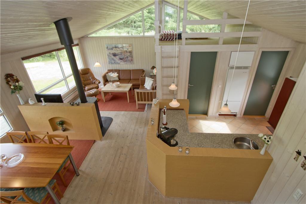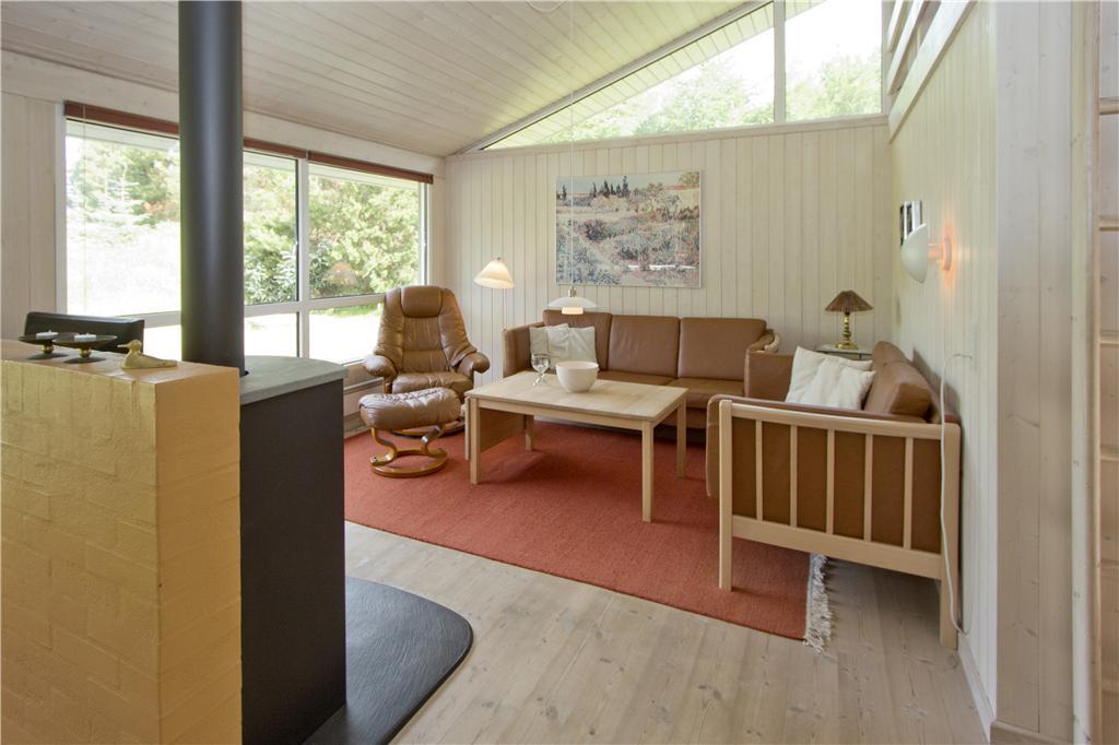Sommerhuset er smukt indrettet i typisk skandinavisk stil med store vinduer, højt til loftet og møbler og udstyr af høj kvalitet; her er tale om et sommerhus i topklasse. Det store opholdsrum består af køkken, spiseafdeling og stue; samlet i ét stort rum og alligevel afskærmet af halvmure, som markerer, at hver afdeling har sin egen funktion. Sommerhuset har tre værelser og kan rumme seks overnattende personer, og badeværelset er med bruser og adgang til sauna. Her er alle tænkelige hårde hvidevarer, såsom opvaskemaskine, vaskemaskine og tørretumbler, og med ild i brændeovnen spreder den hyggelige og afslappende feriestemning sig hurtigt til hele familien.