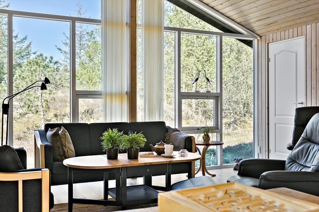 Krogsletten ender blindt, så det er kun naboer fra vejen, der passerer forbi sommerhuset – og måske også vildtet i området, der trives i det naturskønne landskab. Vesterhavet er et af de trækplastre, der lokker feriegæster til Saltum, og her fra sommerhuset kan gåturen til stranden klares på under et kvarter. En anden lokal seværdighed er Fårup Sommerland, hvor børnefamilier nemt kan bruge en dag eller to på at prøve alle forlystelser og boltre sig i aquaparken. Jambo Feriepark er også værd at besøge, for her finder I en af Europas største minigolfbaner, så hele familien kan dyste om, hvem der bliver feriens ukronede minigolfmester.