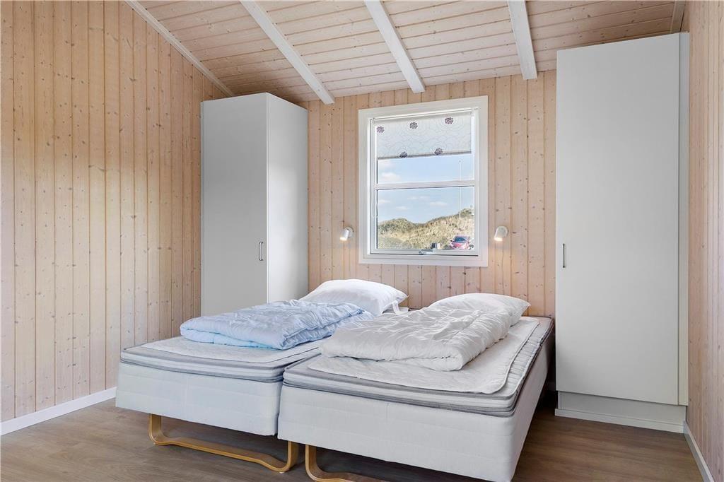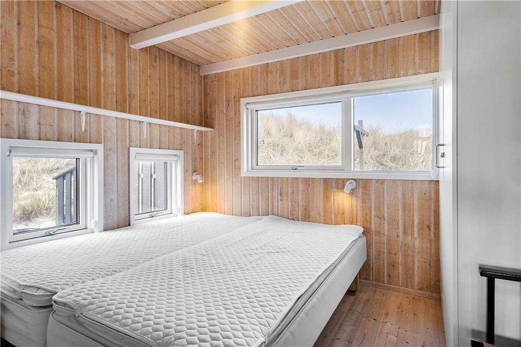 Sommerhuset er moderne og smagfuldt indrettet med masser af lys fra de mange store vinduespartier. Både køkkenet og badeværelset er godt udstyret med gode hårde hvidevarer, så man kan holde en afslappende ferie med fokus på kvalitetstid til familien. På badeværelset kan man desuden også fylde spabadet med varmt vand og tænde op i saunaen, hvis man trænger til lidt wellness-stemning efter en lang dag ved stranden eller på tur rundt i Nordjylland. Sommerhuset råder over et stort og åbent kombineret køkken og opholdsrum med brændeovn, badeværelset og tre værelser med plads til seks overnattende personer og er dermed velegnet til både familie- og parferie. Medbring gerne pc eller tablet, da huset har gratis og trådløst internet installeret.