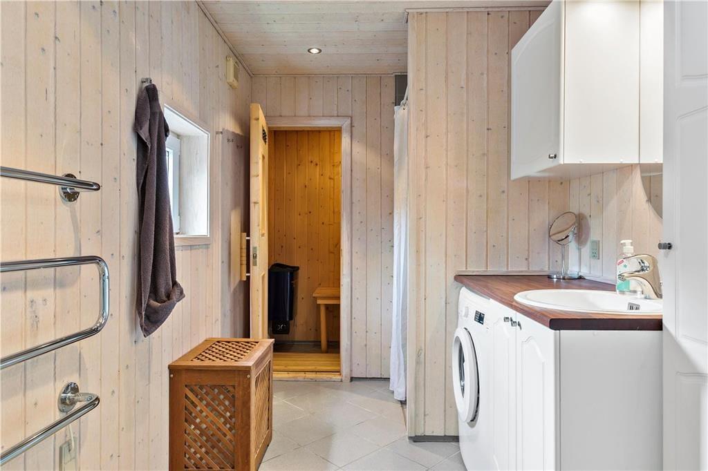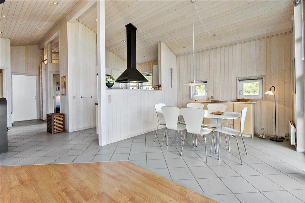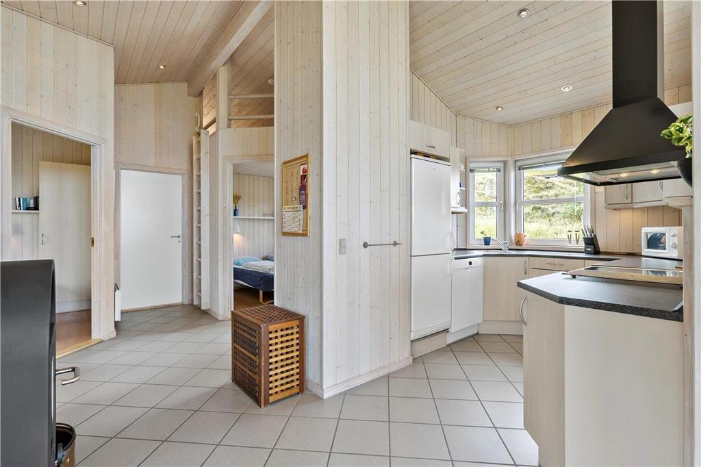 Sommerhuset har alt, hvad man kan drømme om for at få en vellykket ferie med familien; kig til havet, smagfuld og stilren indretning i høj kvalitet, masser af udstyr og hjælpemidler, egen wellnessstemning i form af spabad og sauna og moderne faciliteter som gratis, trådløst internet og parabol med danske og tyske kanaler. Huset er delt praktisk op med værelser og badeværelse til højre for indgangen og det åbne køkken-alrum med stue og brændeovn til venstre. Huset ligger højt, og gennem panoramavinduerne i stuen og spisestuen har man en skøn udsigt til klitområdet med Vesterhavet i baggrunden, som ligger små 500 meter væk. Med seks sengepladser, hvoraf de to er en køjeseng, danner sommerhuset de perfekte rammer for en lille familie eller for to par, som ønsker at holde ferie sammen.