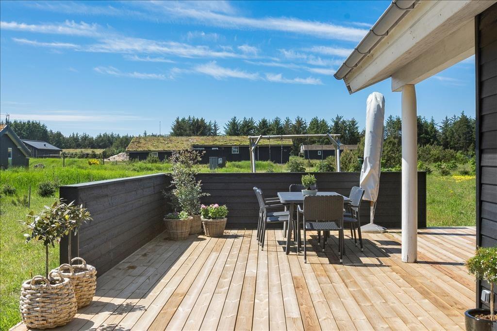 Sommerhuset byder på flere dejlige terrasser, der er strategisk placeret rundt om huset, så I kan finde sol eller skygge hele dagen. Den store terrasse er det ideelle sted til at nyde morgenkaffen, mens en mindre terrasse giver mulighed for at trække sig tilbage i ro og fred. Uanset hvor I sidder, kan I høre fuglene kvidre og mærke den friske luft omkring jer. Den store have indbyder til både afslapning og leg, og der er masser af plads til at nyde livet i det fri – hvad enten det er til en god middag på terrassen eller en stille stund med en god bog.