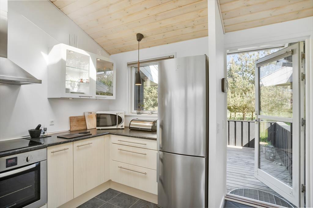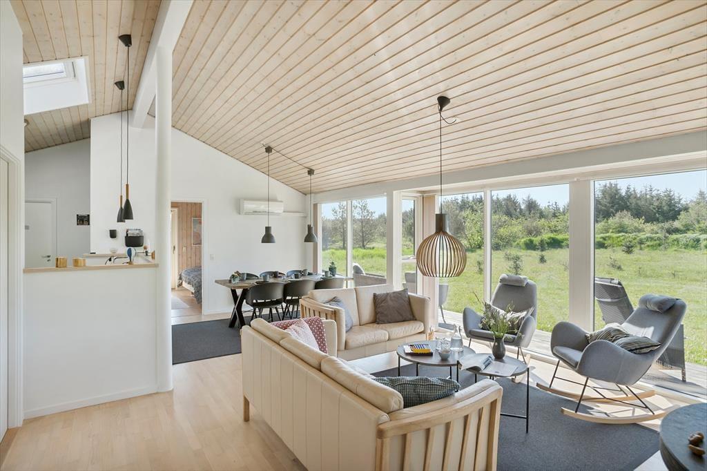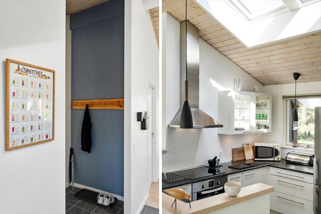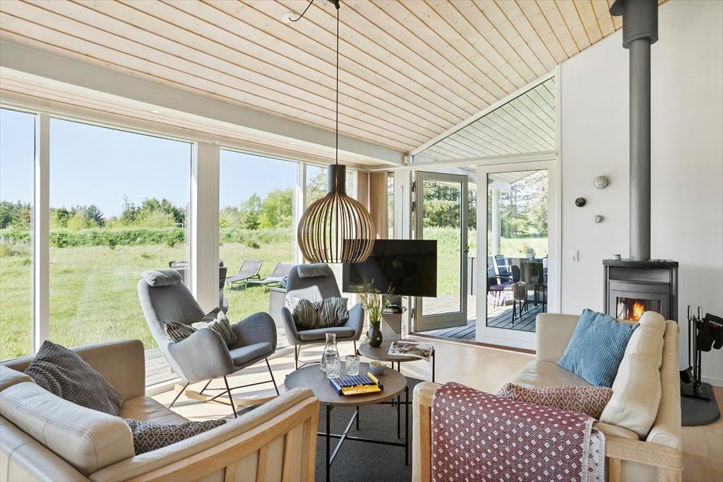 Husets åbne køkken alrum er et af de helt store trækplastre. Med højt til loftet og et dejligt lysindfald bliver rummet hurtigt et naturligt samlingspunkt. Den varme brændeovn skaber den perfekte stemning på de kølige dage, hvor hele familien kan samles til fælles madlavning eller en god middag. Om aftenen er det skønt at slappe af i den store stue, hvor både voksne og børn kan finde plads til deres egne aktiviteter. Børnene vil elske at trække sig tilbage i hjørnet med brætspil, mens de voksne kan nyde et glas vin i det komfortable miljø. De rummelige soveværelser sikrer god plads til en god nats søvn, så du kan vågne frisk og veludhvilet til en ny feriedag.