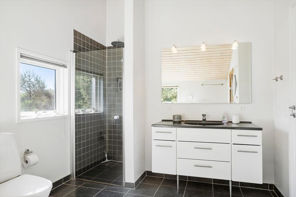 Udenfor sommerhuset finder du terrasser, der indbyder til ro og afslapning. Med masser af plads til både sol og skygge kan du vælge det perfekte sted at nyde din morgenkaffe, din middag eller et glas vin i skumringen. Hvis du er til udendørs aktiviteter, vil du elske den store grund, der er ideel til både boldspil og leg. Her er der rig mulighed for både børn og voksne at være aktive sammen. Hvis du vil nyde den danske natur, er området omkring sommerhuset perfekt til en spadseretur eller en afslappende stund under åben himmel. Uanset hvad du vælger, vil de rolige omgivelser og den hyggelige atmosfære gøre dit ophold uforglemmeligt.