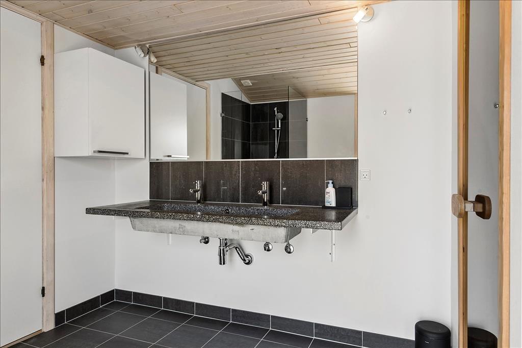 Udendørsområdet byder på en stor grund, hvor der er god plads til både boldspil og leg, og den store have er et ideelt sted til at nyde solen og den friske luft. Hvis du er på udkig efter et øjebliks ro og fred, kan du finde din egen oase blandt træerne eller på en af de mange hyggelige pladser, der omgiver huset. Den store terrasse er det perfekte sted at slappe af med en god bog eller nyde en grillmiddag om aftenen, mens du ser solen gå ned.