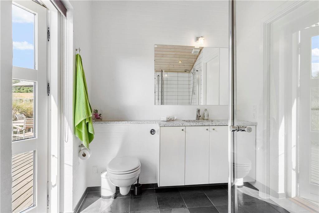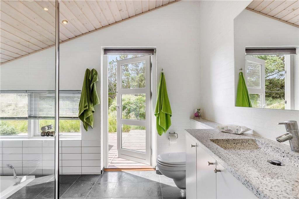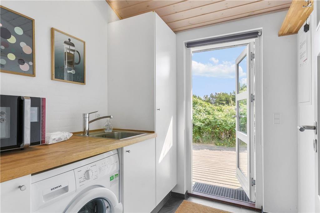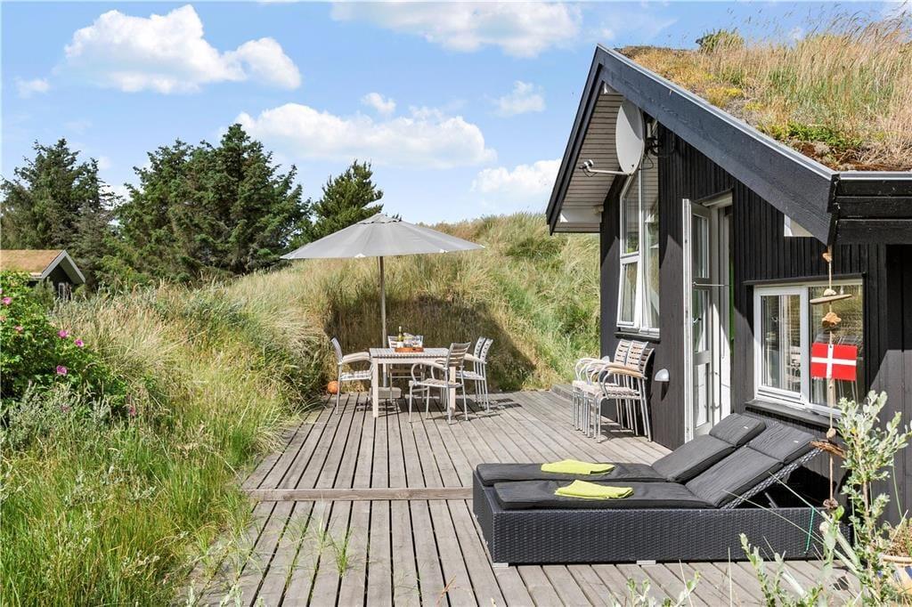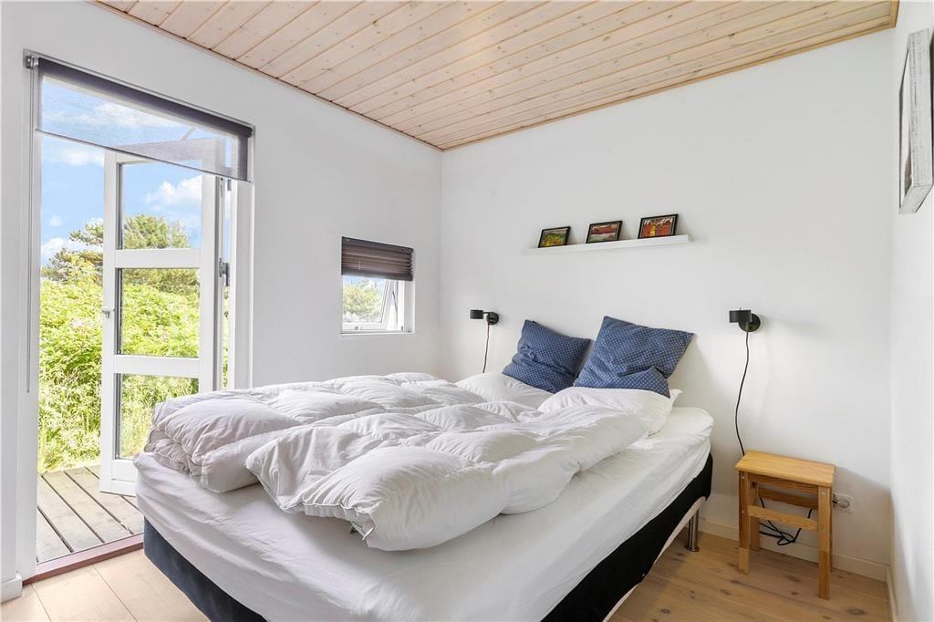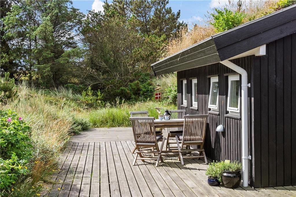 Sommerhusets store terrasse er en sand perle, hvor du kan tilbringe timer med afslapning. Den er helt ugeneret, så du kan nyde solens varme, en god bog eller en middag under åben himmel i fuldstændig ro. Terrassen er tilgængelig fra både stuen og køkkenet, så det er nemt at tage den friske luft ind i ferien. Når du er klar til at udforske, kan du vælge at tage en kort gåtur gennem det naturskønne landskab eller nyde livet udendørs på den store terrasse, mens du lader roen sænke sig over dig.