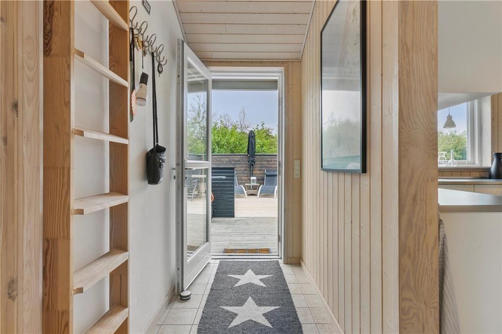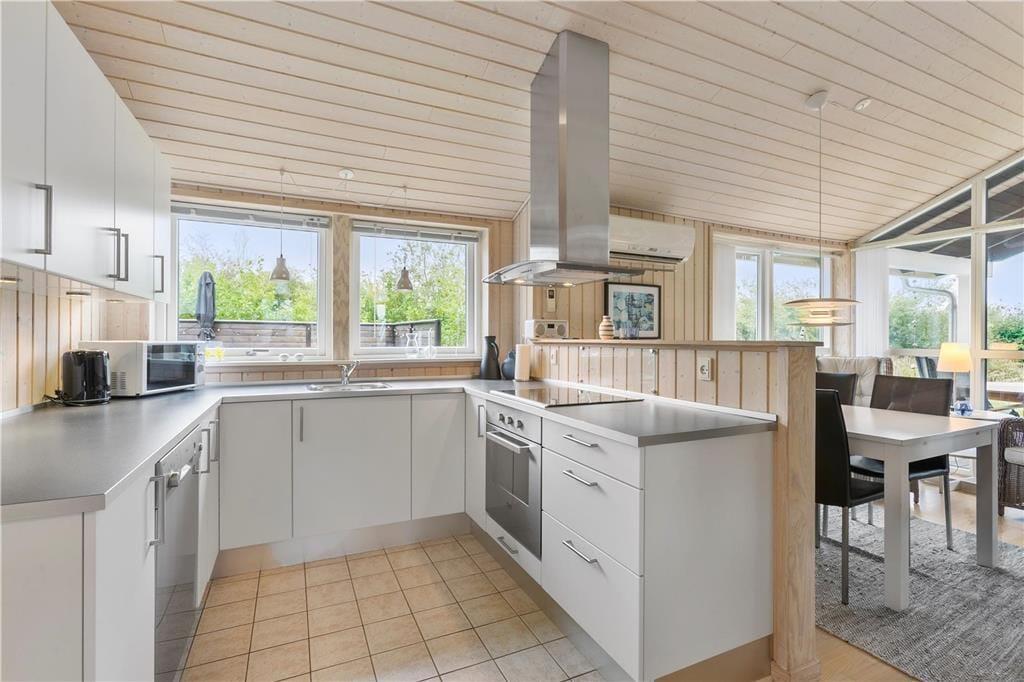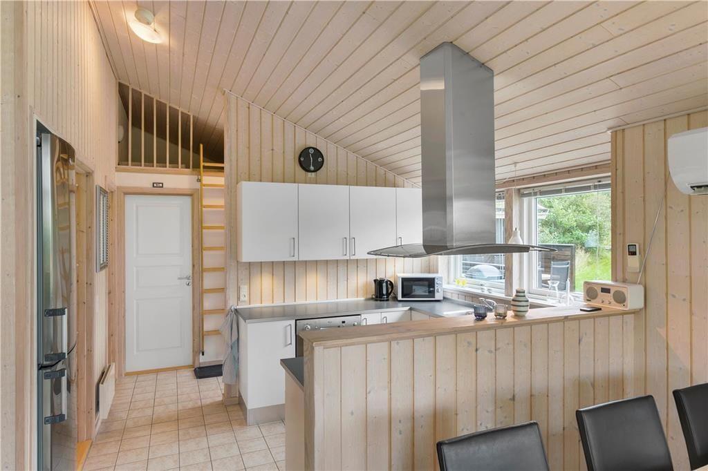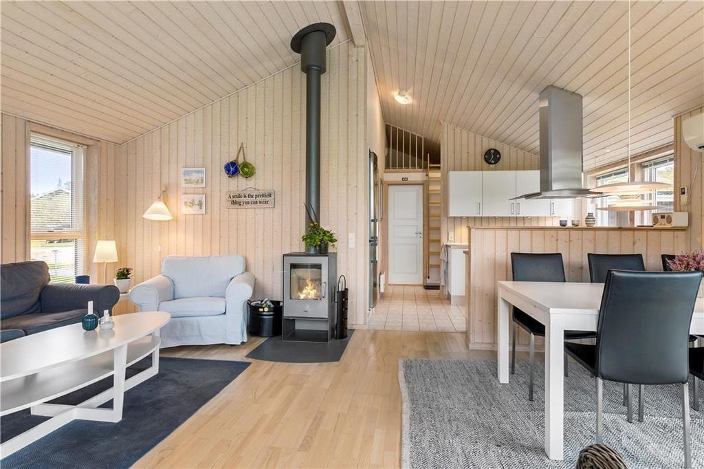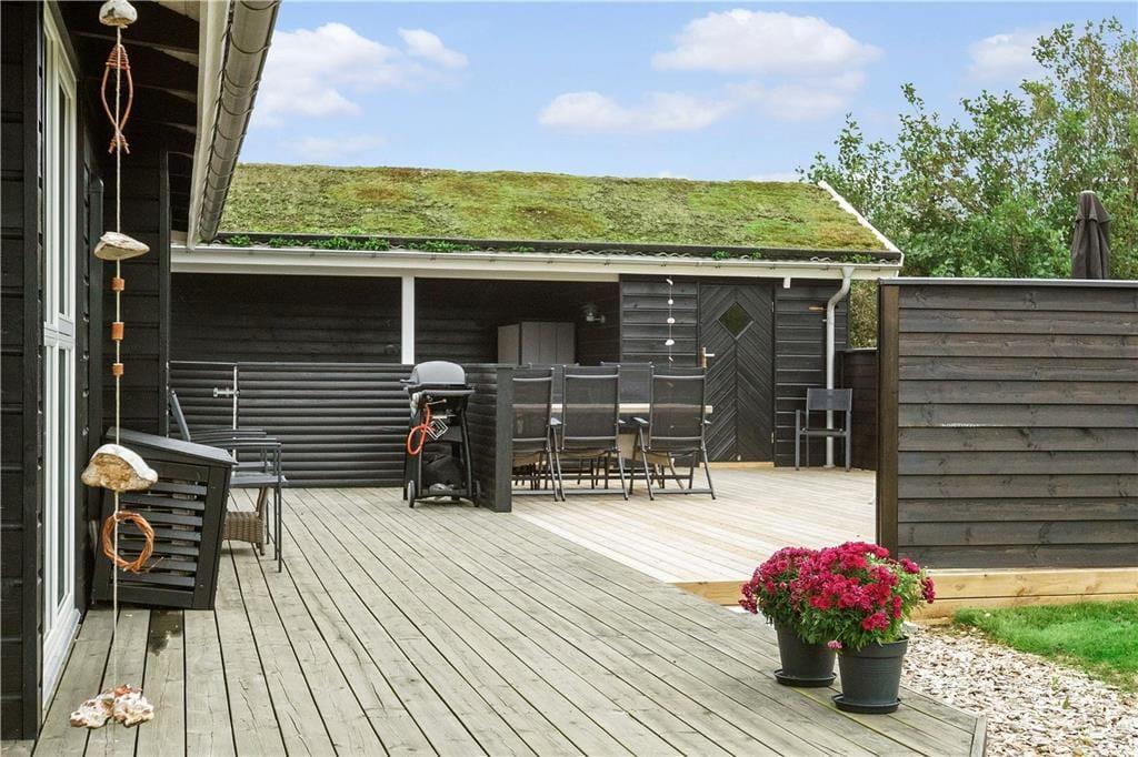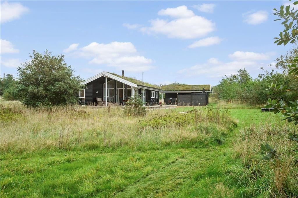 Sommerhuset er opført med sort træværk og hvide vinduer udvendigt, og med det græsbeklædte tag er huset charmerende og fuld af ægte sommerhusstemning. I det åbne køkken-alrum er der store vinduer, som giver et godt lysindfald samt en brændeovn, hvor man kan lune sig om aftenen. Fra opholdsrummet er der direkte udgang til terrassen, hvoraf en del af er overdækket, her er det oplagt at nyde mange af feriens måltider. Huset tilbyder tre fine soveværelser. Huset er udstyret med opvaskemaskine, vaskemaskine og tørretumbler for at gøre ferien så bekvem og afslappende som muligt. Dette sommerhus giver rigtig gode muligheder for en alletiders ferie i skønne Nordjylland! I huset er installeret lyn hurtig Fiber internet forbindelse samt ChromeCast.