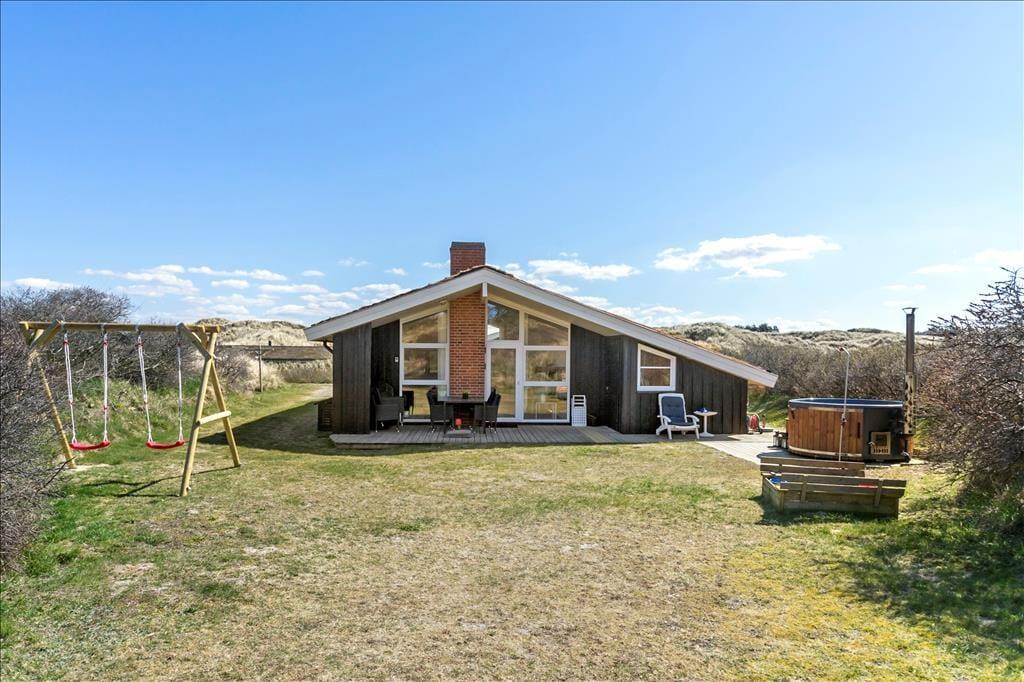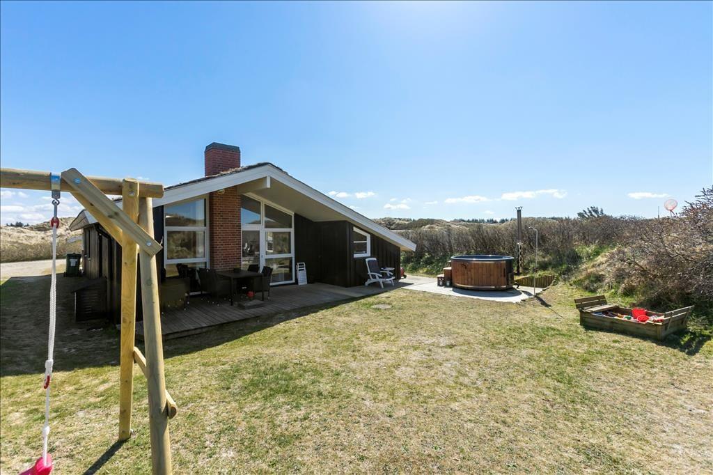 Dette dejlige sommerhus er perfekt til en afslappende ferie med familien eller vennerne. Beliggende på en naturskøn grund tæt på vandet, tilbyder huset en række luksuriøse faciliteter, der sikrer den perfekte ferieoplevelse. Fra den store terrasse med vildmarksbad, hvor du kan nyde stjernehimlen om aftenen, til den hyggelige stue med brændeovn – her er alt, hvad du behøver for at slappe af og nyde livet. Beliggenheden i Saltum gør det nemt at komme til både Vesterhavet og lokale attraktioner, så du kan både finde ro og opleve det bedste af Nordjylland.