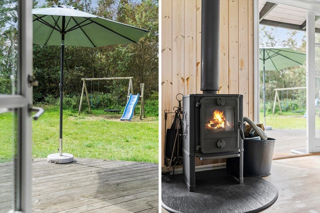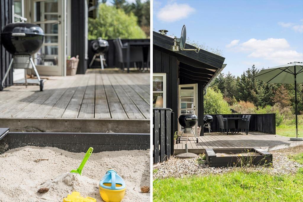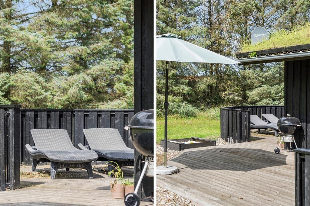 Træd ud på den dejlige store terrasse og mærk solen varme. Terrasseområdet byder på rig mulighed for at slappe af og nyde udendørslivet, hvad enten du vil solbade, læse en bog eller nyde en lækker middag under åben himmel. Om aftenen kan I tænde op i grillen og spise under stjernerne, mens I lytter til naturens lyde omkring jer. Huset ligger på en naturgrund, hvilket giver en følelse af at være helt tæt på naturen, samtidig med at stranden kun er en kort gåtur væk – perfekt til morgenbad eller en tur langs vandet.