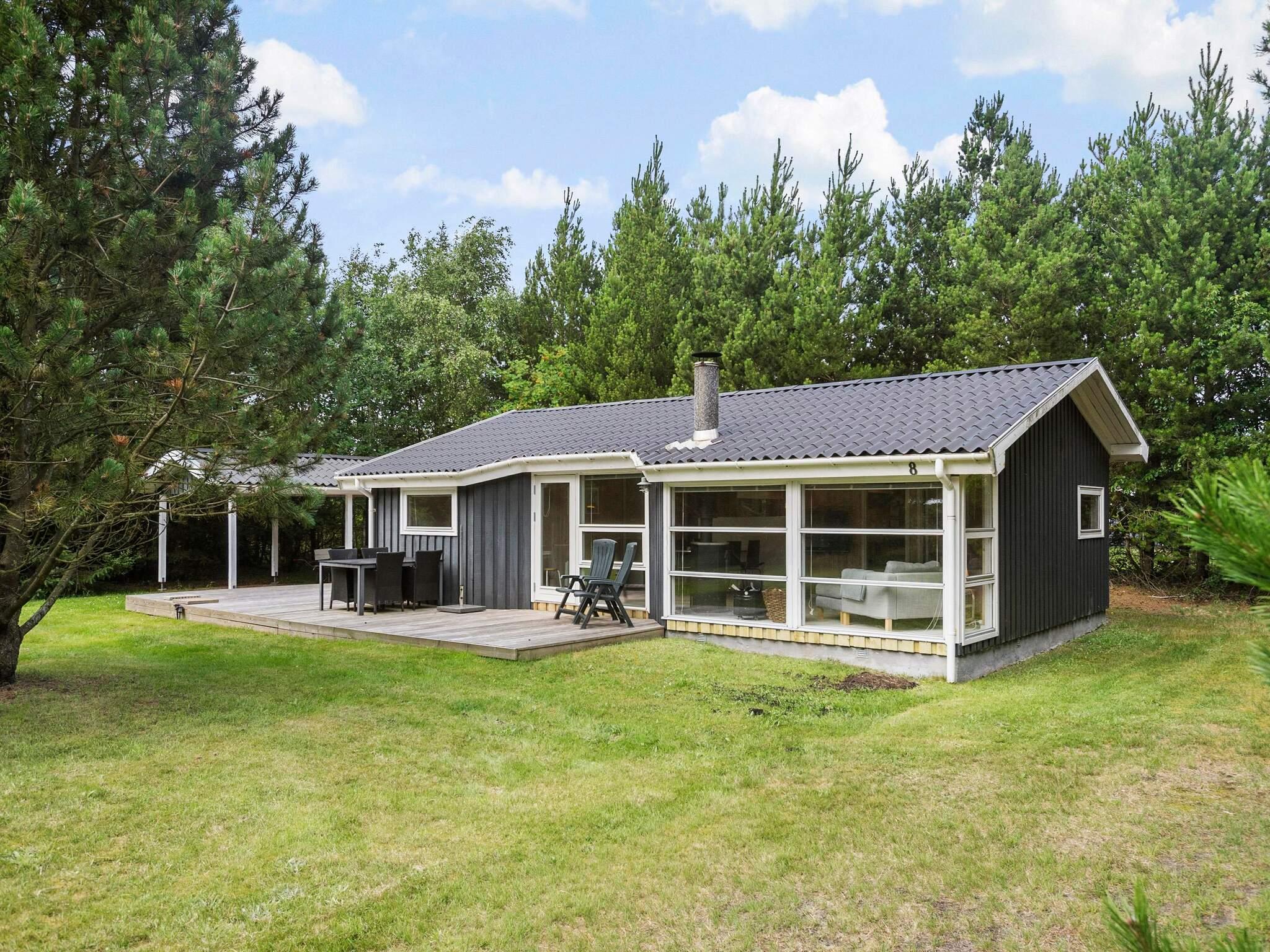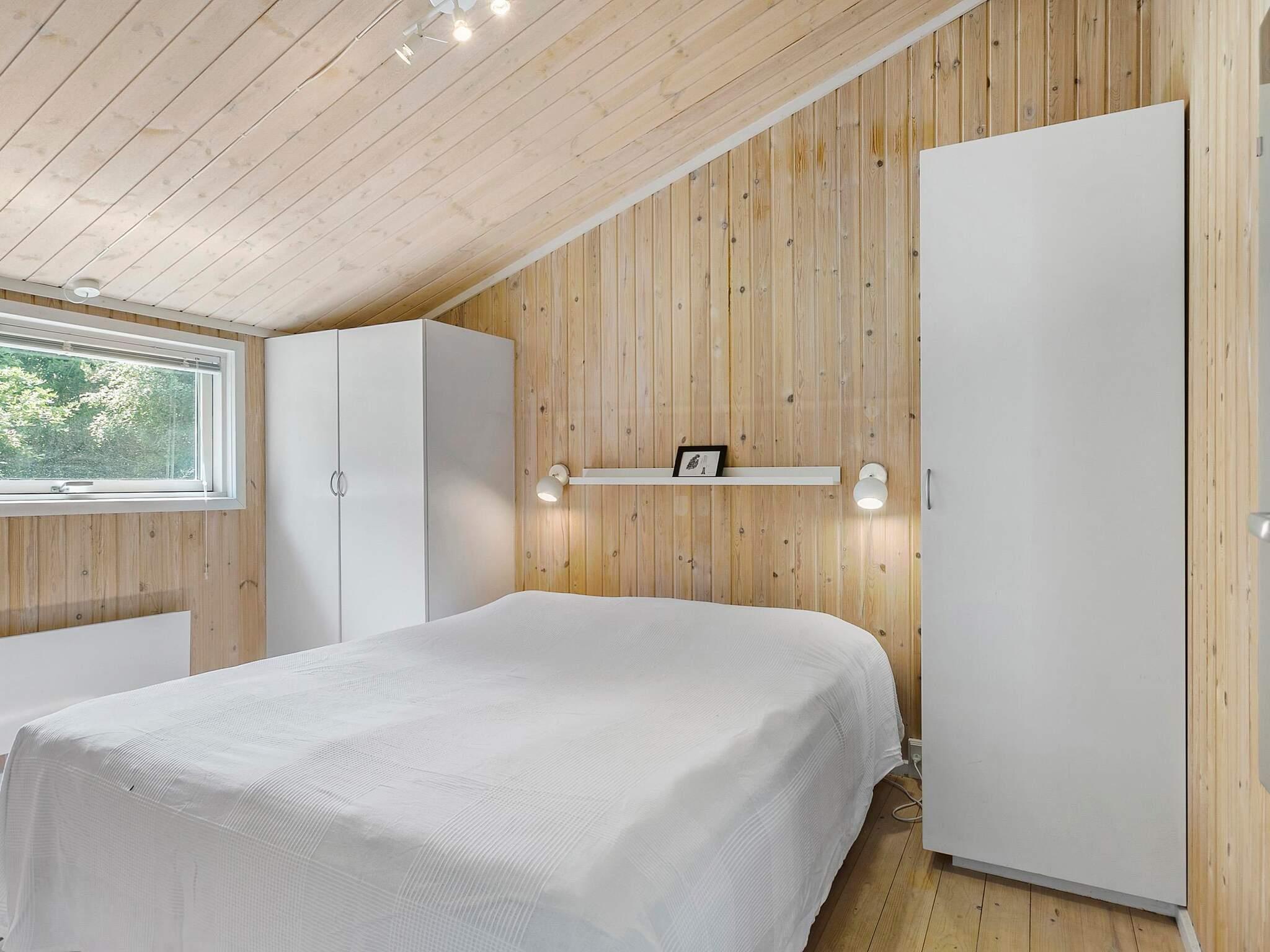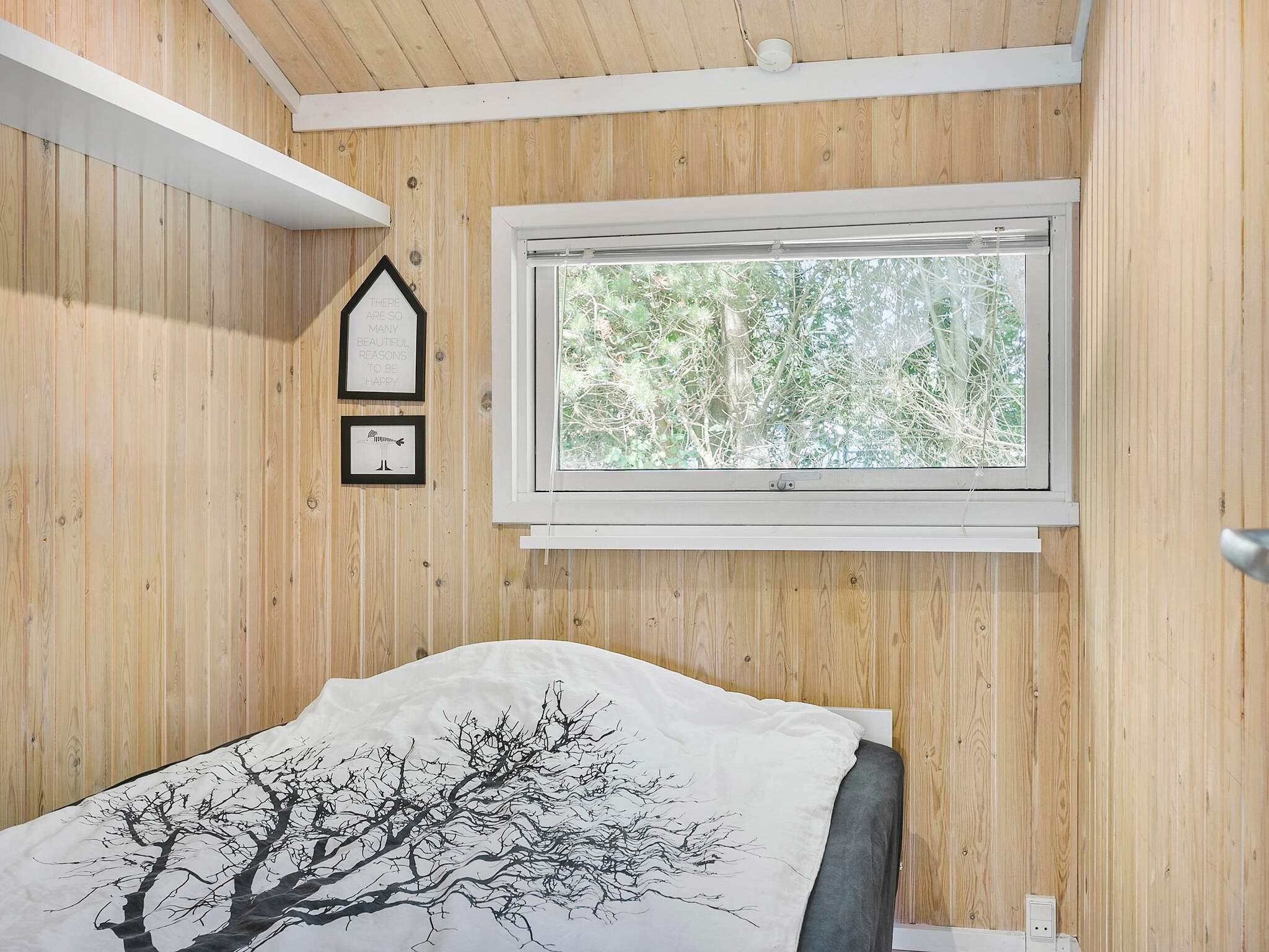 Dette klassiske danske feriehus med et smukt åbent køkken og stue indbyder til hyggelige timer ved ilden i brændeovnen. Her kan familien spille kort ved spisebordet, mens middagen simrer i ovnen. Det hyggelige køkken åbner ud mod den smukke terrasse og den store have, og vinduerne byder på en smuk udsigt over naturen på alle sider. Feriehuset har i alt tre soveværelser og et stort badeværelse med sauna. Det ene soveværelse har plads til tre personer i en køjeseng og en hems. De to andre soveværelser har dobbeltsenge, så huset kan rumme op til 7 personer.