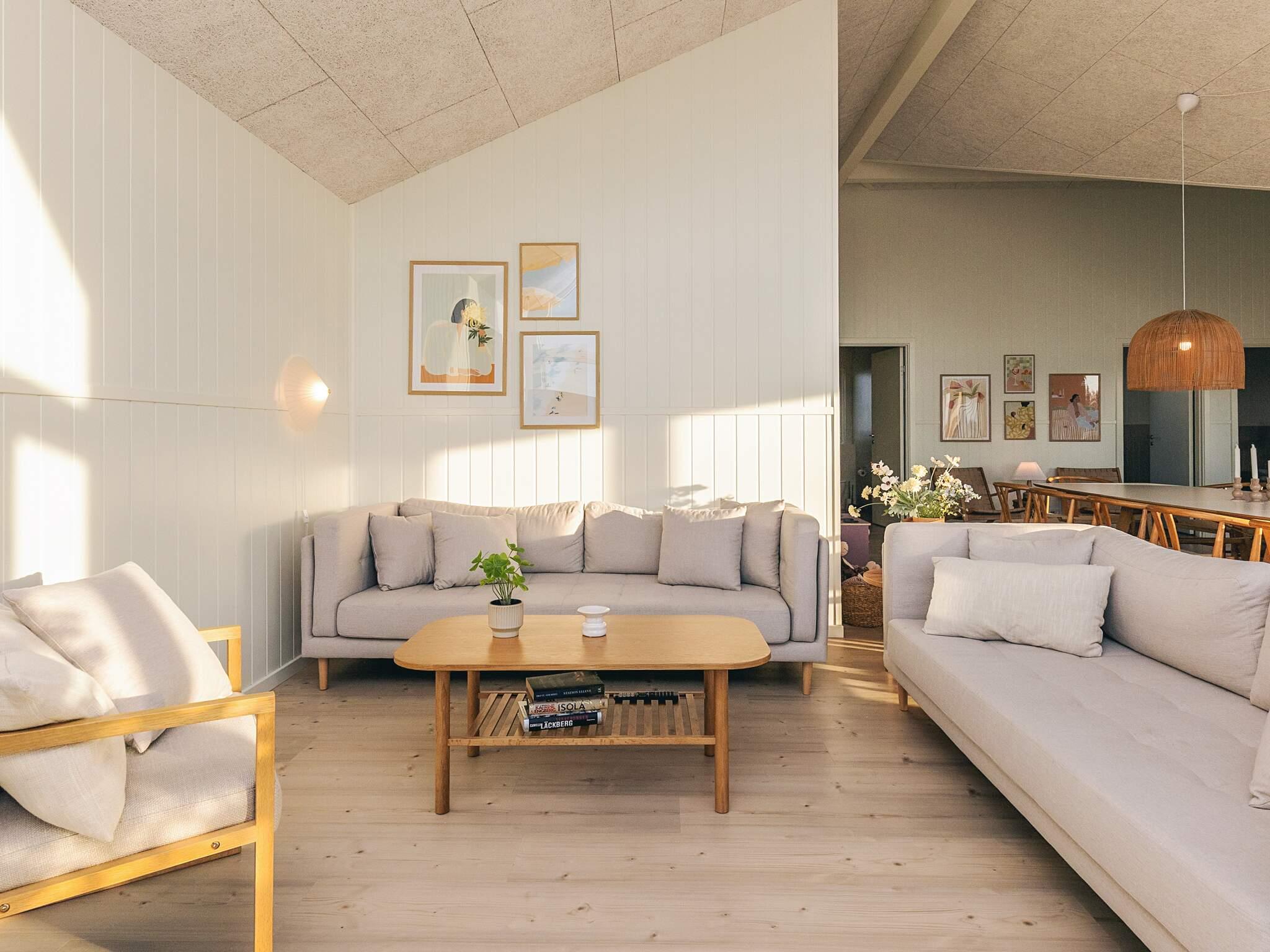 Udenfor breder de åbne marker sig, og indendørs mødes I af en stilfuld, nordisk indretning, der kombinerer lys, luft og komfort. Find jer godt til rette omkring det store spisebord, hvor frokosten nydes med udsigt til landskabet, eller slå jer ned i den bløde hjørnesofa med en bog eller et brætspil. Gennem de store vinduespartier strømmer dagslyset ind og skaber en helt særlig stemning i opholdsrummet.