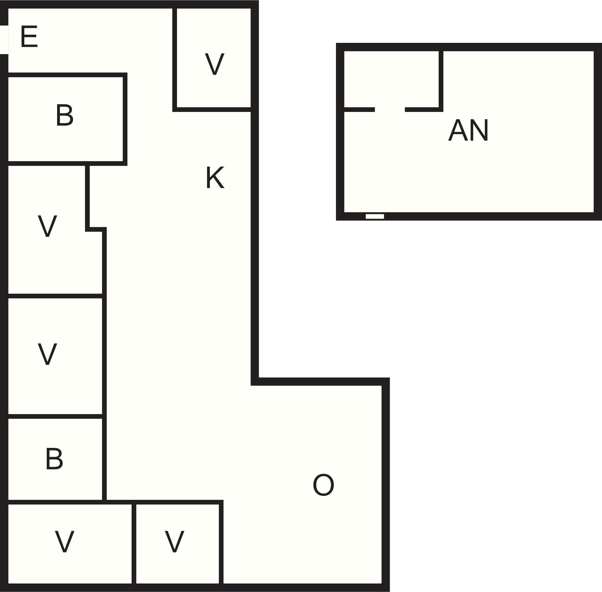 Husets indretning er stort køkken/alrum, 5 værelser, 2 badeværelser og aktivitetsrum i annekset.