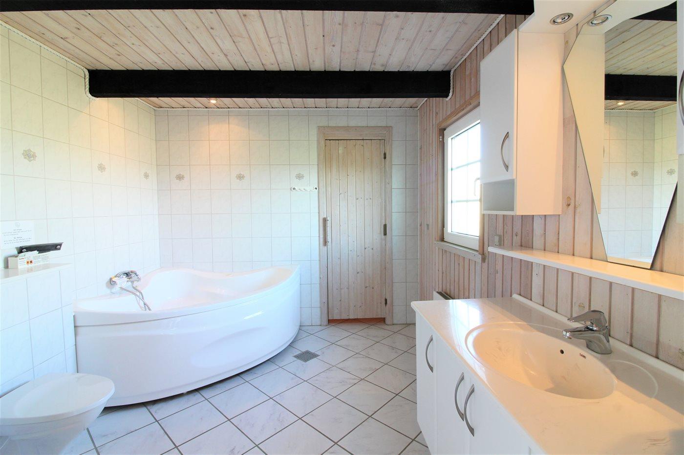 Der er 1 badeværelse med bruseniche og 2 toiletter, heraf 1 gæstetoilet. Der er gulvvarme på 1 badeværelse. I saunaen er der mulighed for afslapning.