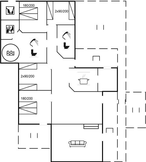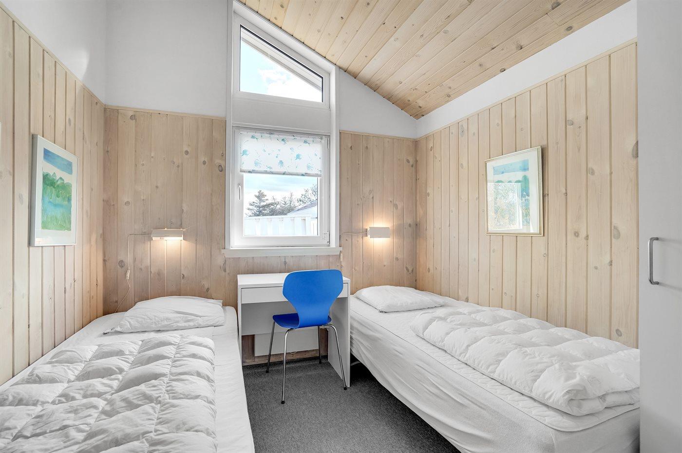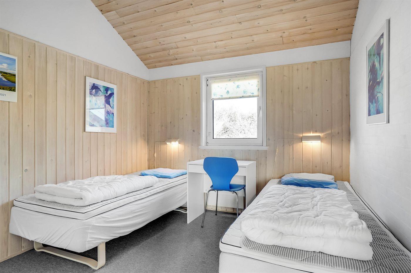 Der er i alt 4 soveværelser. Sovepladserne fordeler sig på: 4 sovepladser i dobbeltsenge. 4 sovepladser i enkeltsenge. Derudover er der 2 stk. barnesenge.