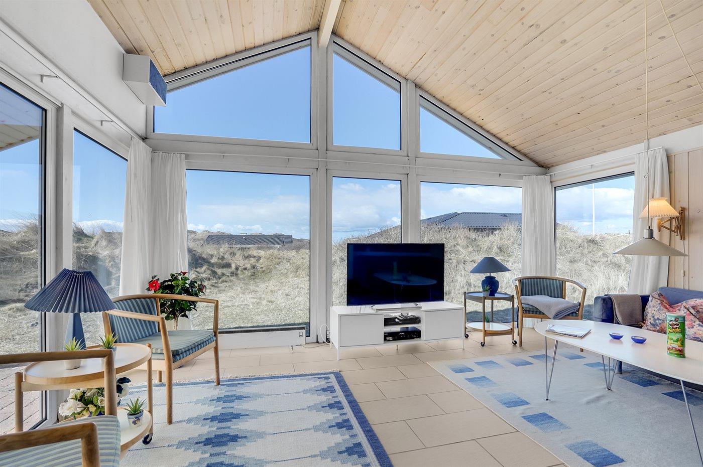 Ferieboligen er beliggende på en 2500 m² stor klitgrund. Der er 350 m til havet. Nærmeste forretning er beliggende i en afstand af 1500 m. Til ferieboligen hører 55 m² terrasseareal. Desuden er der 22 m² overdækket terrasse. Der er redskabsrum. Sandkasse. Der er garage til rådighed. Der er installeret stik til opladning af elbil.