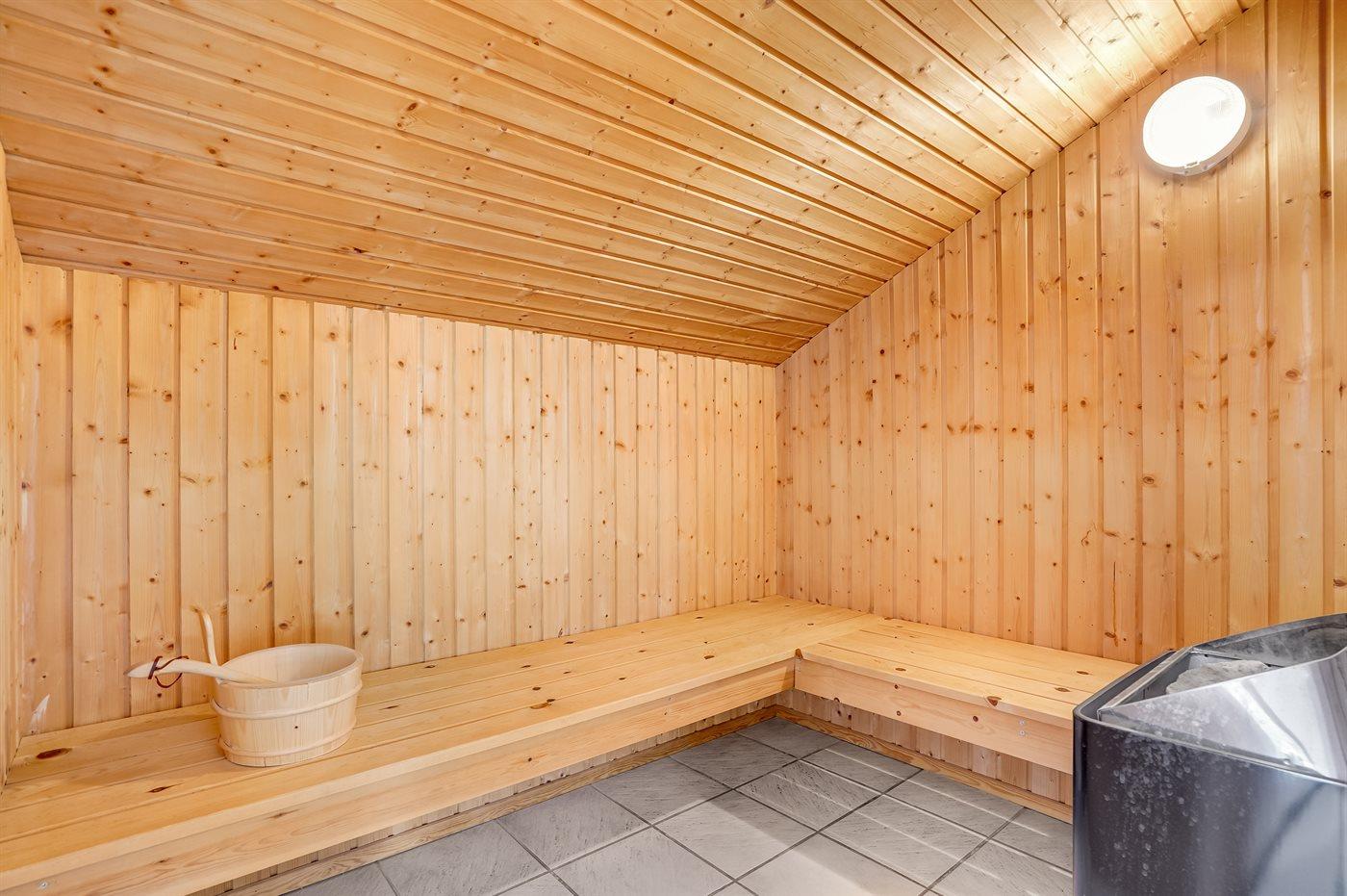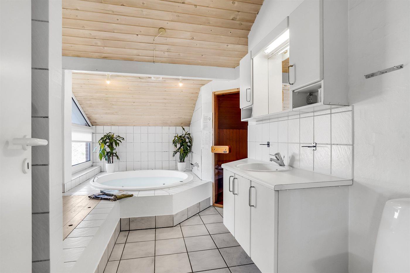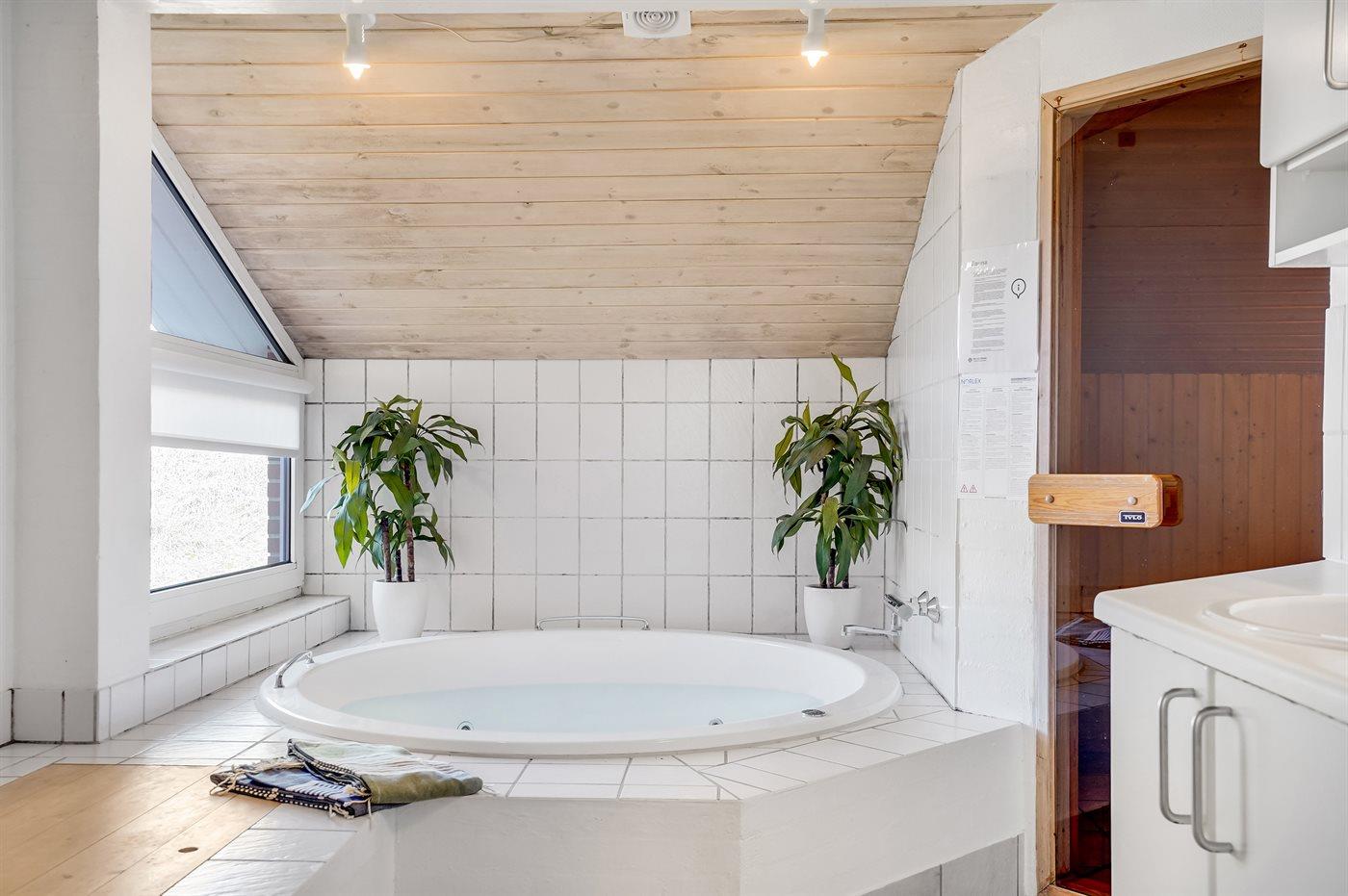 Der er 2 badeværelser med bruseniche og 2 toiletter. Der er gulvvarme på 2 badeværelser. I saunaen er der mulighed for afslapning.
