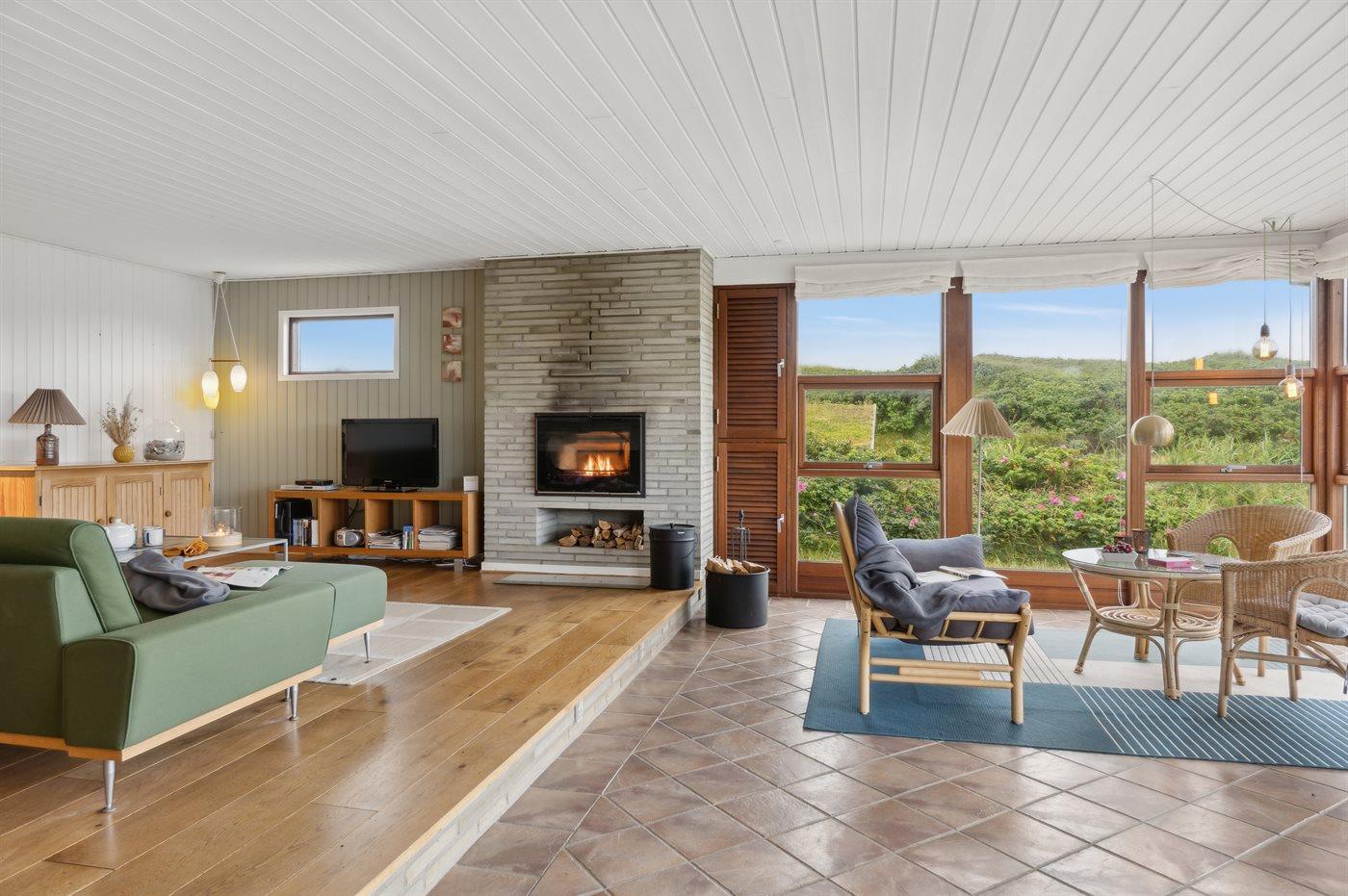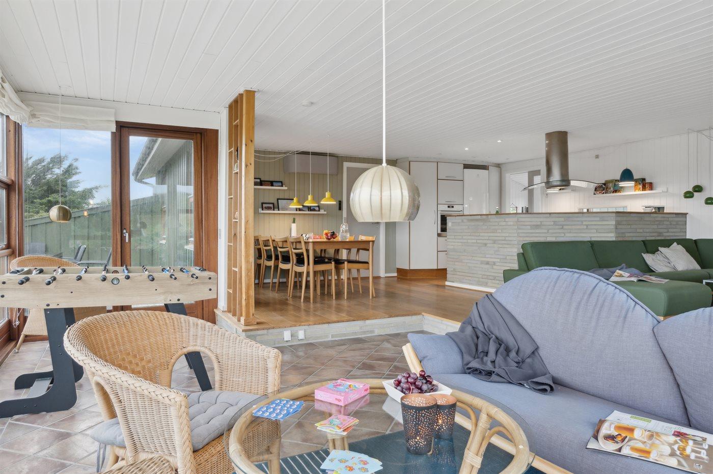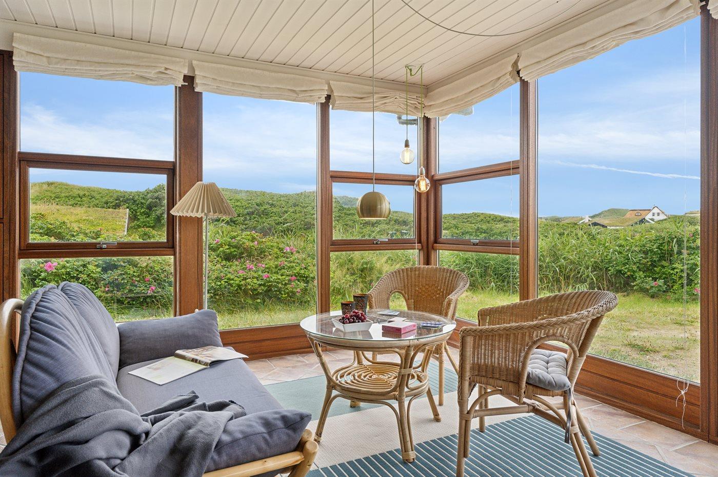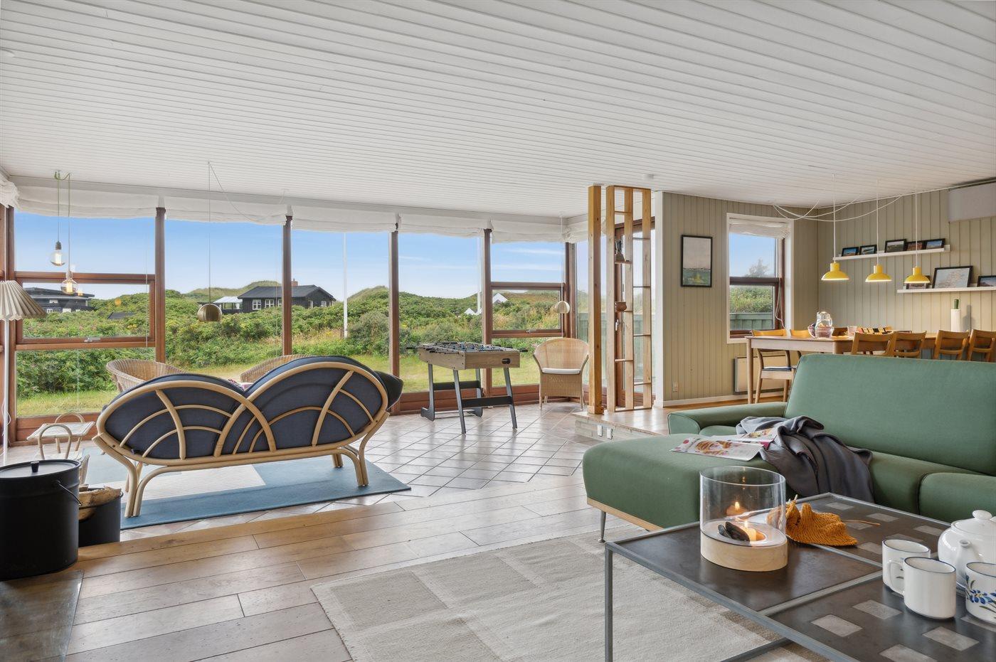 Skønt sommerhus nær Vesterhavet med anneks, sauna og stor terrasse på kuperet grund.